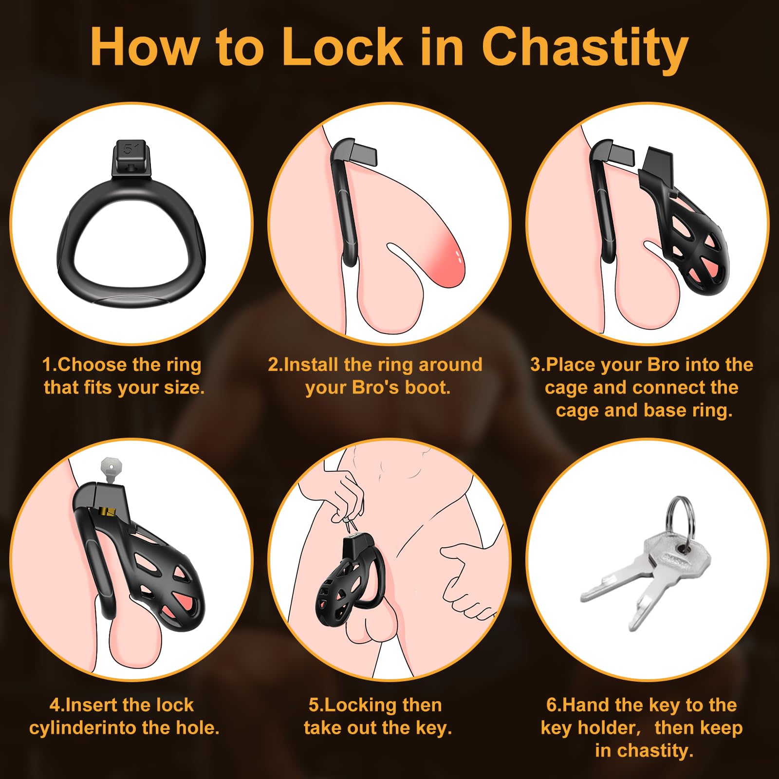 Q: How does the vertical invisible lock work?A: The chastity device features a vertical hidden lock structure that simplifies the locking and unlocking process, allowing for quick and easy connection of the cage to the base ring.
