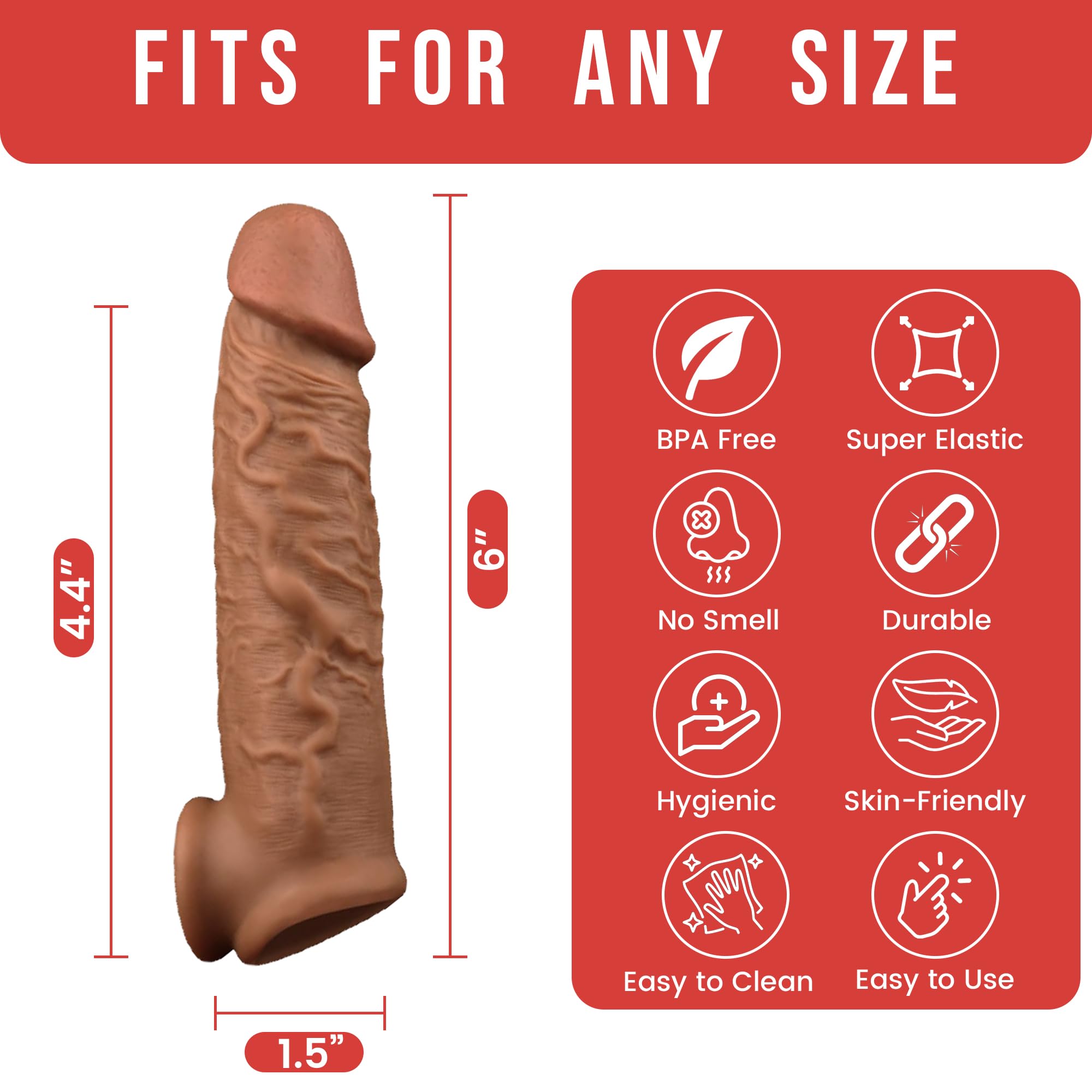 Q: Is the penis sleeve suitable for all sizes?A: Yes, the stretchy design of the sleeve accommodates various sizes, making it versatile for different users.
