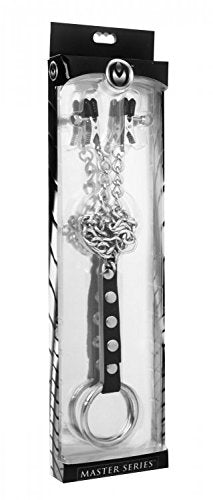 Get The Best Of Both Worlds With This Nipple Clamps And Cock Ring Set. Two Alligator Style Nipple Clamps Are Attached To A 1. 75 Inch Metal Cock Ring Via A Chain And Leather Snap Adjusted Strip. Imagine What This Would Feel Like If You Were Wearing It And Walking Around. We Recommend Also Getting The Steel Or Rubber O-Ring Kit For More Cock Ring Sizes. Measurements: Total Length: Adjusts From 19. 5 To 22. 5 Inches; Nipple Chain: 16 Inches In Length; Belly Chain: Adjusts From 9 To 12 Inches In Length; Cock Ring: 1. 75 Inches In Diameter. Material: Steel, Leather. Color: Silver. Note: One Cock Ring Included, Additional Sizes Sold Separately.