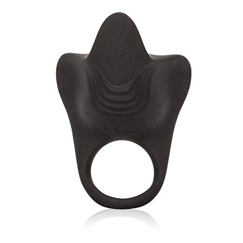 Silicone Rechargeable Remote Pleasurizer Ring Black from Cal Exotics. Thoughtfully architecture for mutual pleasure. Make more of your intimate moments. A perfect fit is all yours with this stretchy and comfortable delight. Designed for easy use, you will