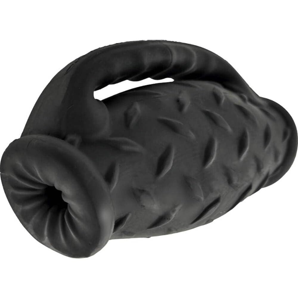 Oxballs Masterjack Double Penetration Stroker - Jo Black Ice - Blue Ox Designs Llc Dba Oxballs. Heavy, fleshy MASTERJACK is for pro-level gooners, stroker that crave something thick with two hole they can fuck with hard. It's hefty, feels blubbery in your fist and packed with features that'll make your JO so much better than a basic handy.MASTERJACK has a handle so no matter how greasy sloppy and wet you bate, it stays in your fist. It's made of our softest silicone blend flubbery Plus+SILICONE with a dull suede finish and industrial diamond plate grips all over the outside.You can fuck it 2-ways: One end has a tighter butt-pucker hole with inner ribs and nubs to add feel to your shaft or flip it over and slide into the ringed sloppier hole a bigger gape for a smoother jack.