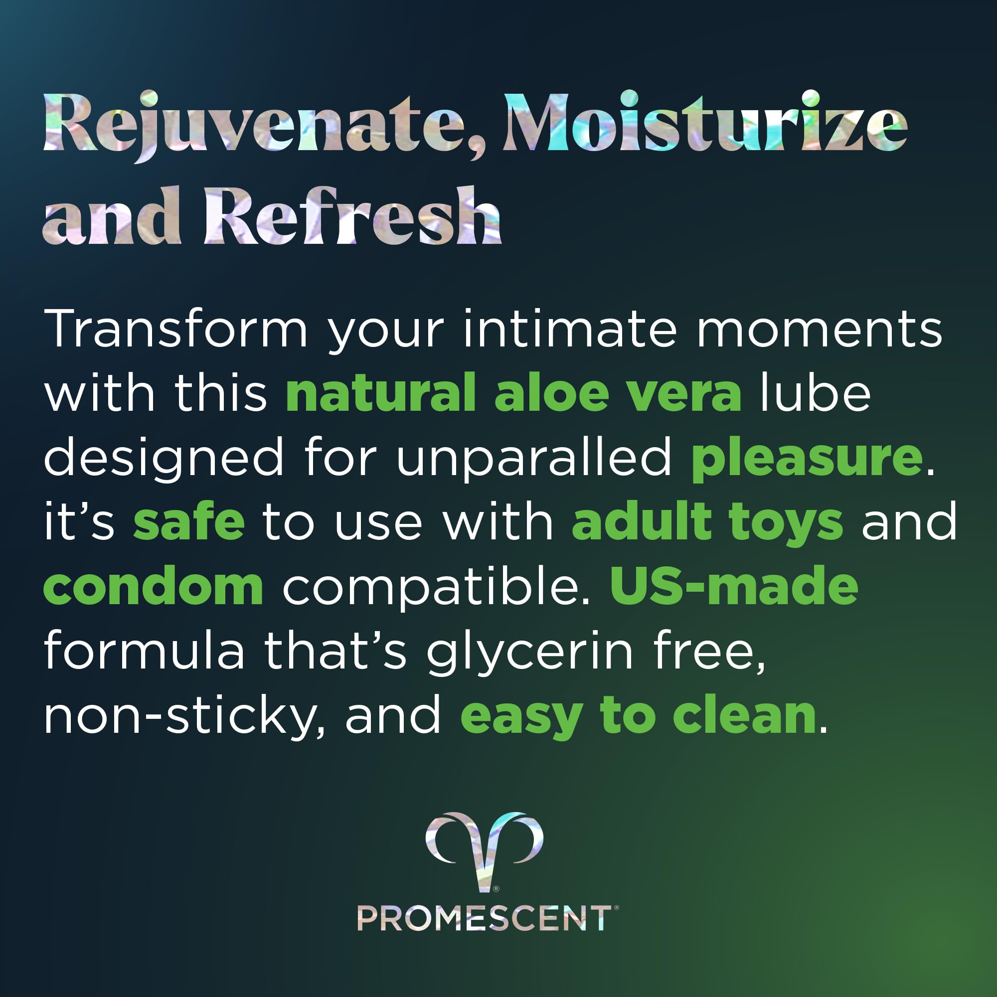 Elevate romantic moments with the reliable and nourishing Premium Aloe Lube from Promescent. Developed carefully and thoroughly researched, our sexual lubricants products are designed to turn up satisfaction while remaining gentle on your skin. Safe, All-Natural Aloe Formulation With a combination of plants and other safe ingredients, this lubricant for sex is moisturizing and comfortable for your intimate moments. Every bottle contains the following plant components. • Aloe Barbadensis Leaf Juice • Tremella Fuciformis (Mushroom) Extract • Chenopodium Quinoa Seed Extract • Hemp Seed Extract • Linum Usitatissimum (Linseed) Seed Extract • Camellia Sinensis Leaf Extract • Avena Sativa (Oat) Kernel Extract It’s paraben-free, glycerin-free, and pH balanced to give your sensitive areas the proper care they need. Comfortable from Foreplay to Climax Engineered to be non-sticky and body-friendly, this lubricant lets you welcome all experimental positions and fun adult activities in the bedroom. Our lubricant sex gel promotes fluid motion for heightened sensations. Suited for Toys and Condoms Our natural lubricant works with most adult toys, natural rubber condoms, and latex condoms. Discreetly Packaged for Privacy No need to panic when the doorbell rings! Our product is delivered in a plain white package with a discreet return address. Feel satisfied and satiated with the Premium Aloe Lube from Promescent.