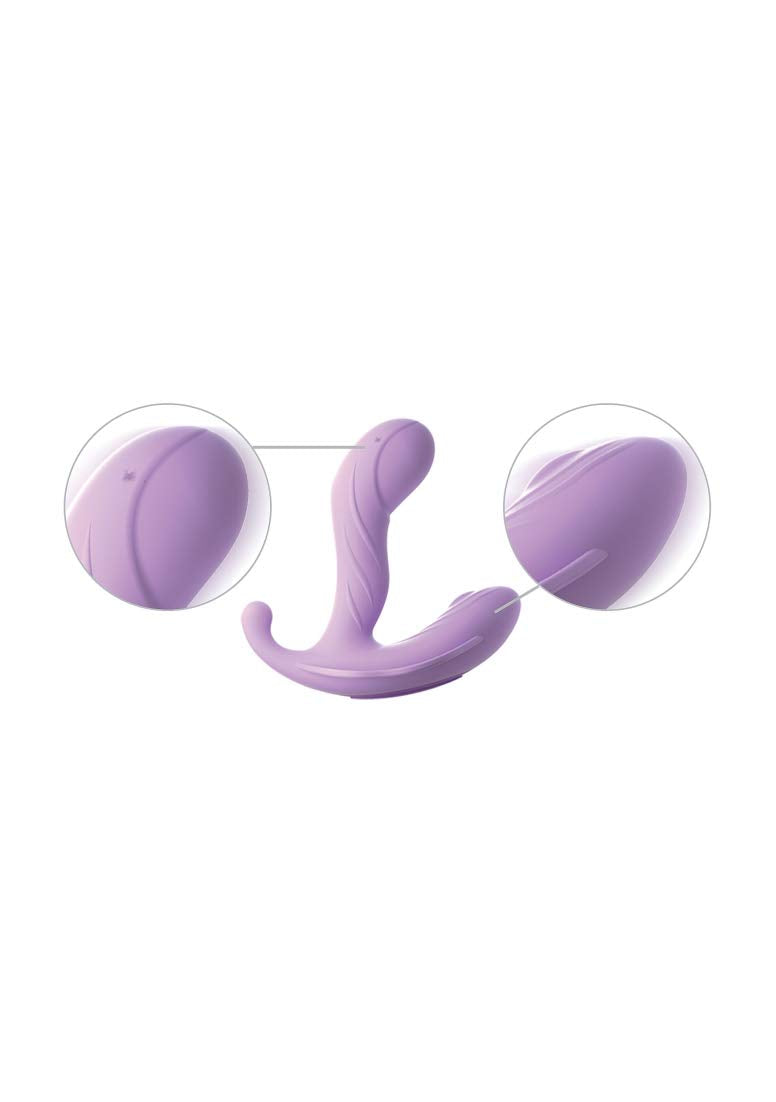 Q: What is the Pipedream Products Fantasy for Her G-Spot Stimulate-Her?A: The Pipedream Products Fantasy for Her G-Spot Stimulate-Her is a vibrator designed to stimulate the G-Spot and clitoris with its curved shape, warming function, and multiple vibration settings.