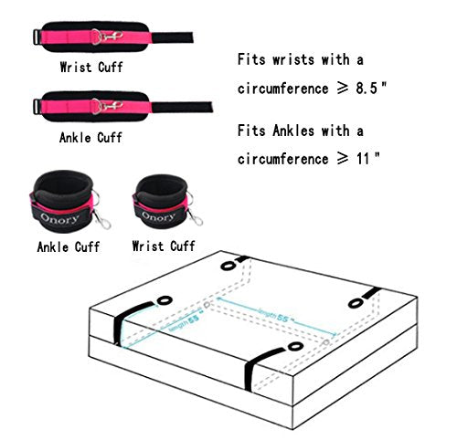 How to use: 1. Position the restraint straps around the head and foot of the mattress or around the sides to explore new and exciting uses; 2. Designed for universal use, adjust the straps to fit most bed size; Gender: Unisex; Size: Adjustable; You can adjust the handcuffs and ankle cuffs based on your need