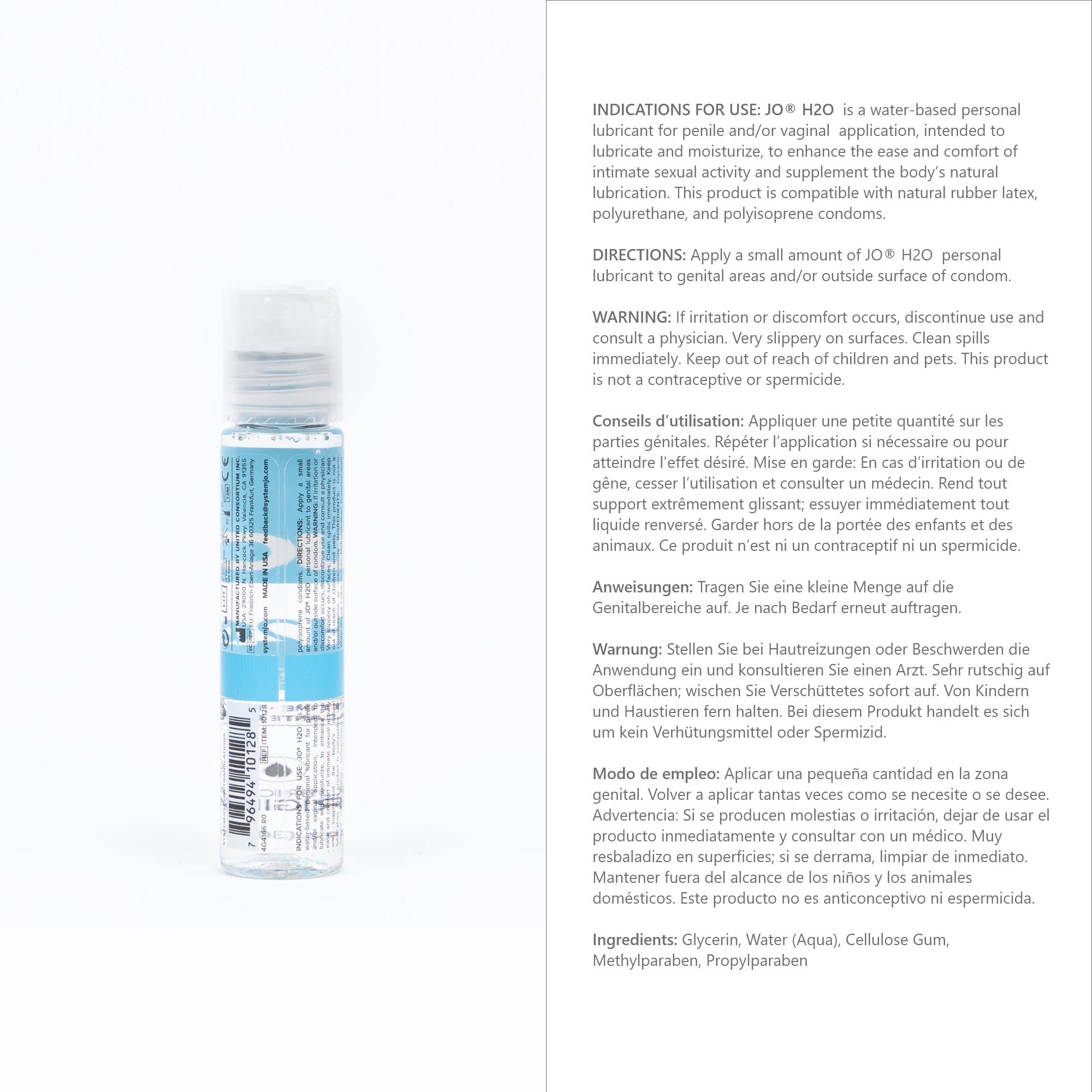 Q: What size is the JO H2O Lubricant bottle?A: The JO H2O Lubricant comes in a 1 oz bottle, making it convenient for travel or discreet storage.