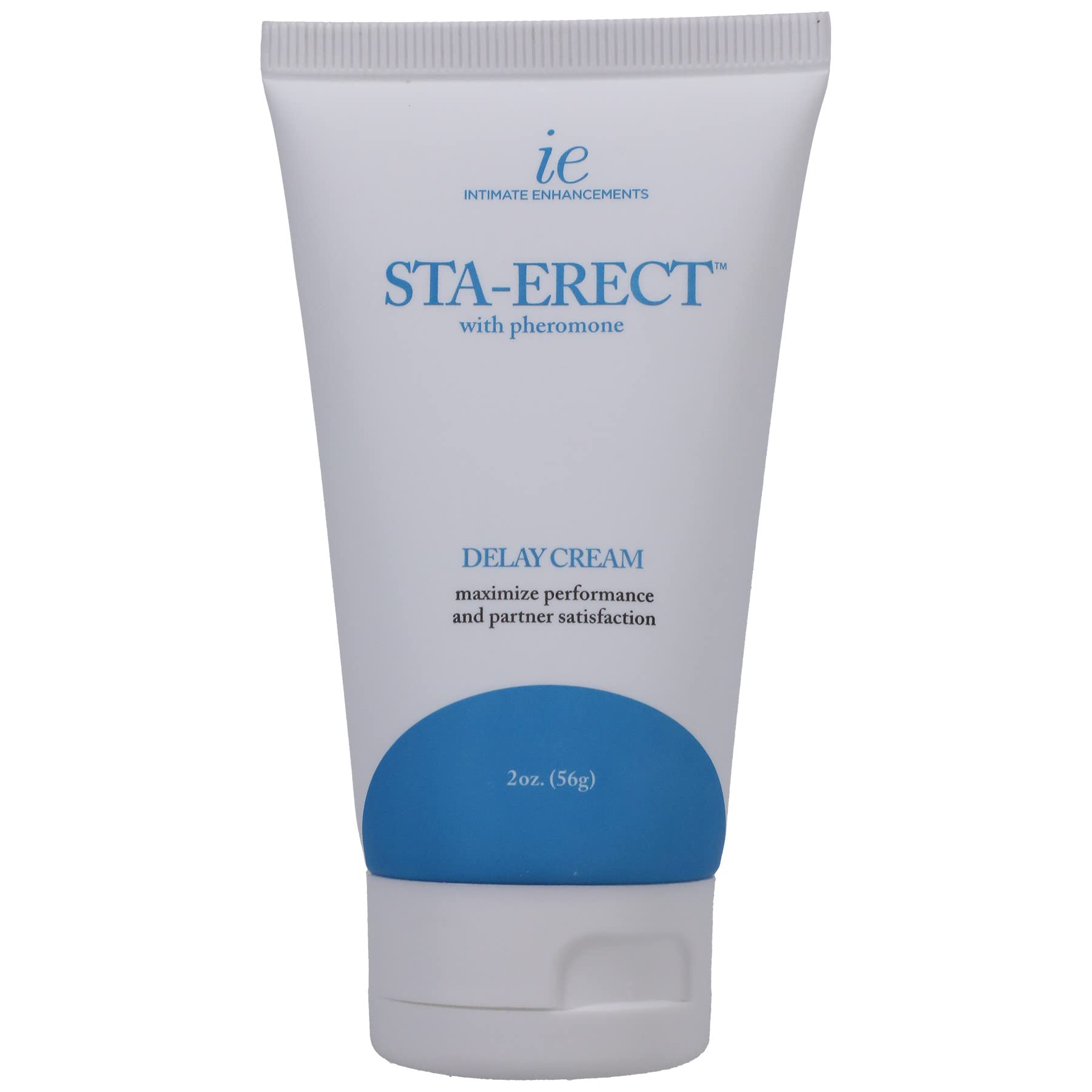 Q: How does Sta-Erect Delay Cream work?A: The cream contains 7.5% Benzocaine, a desensitizing agent that helps reduce sensitivity, and is infused with pheromones to enhance sexual desire.