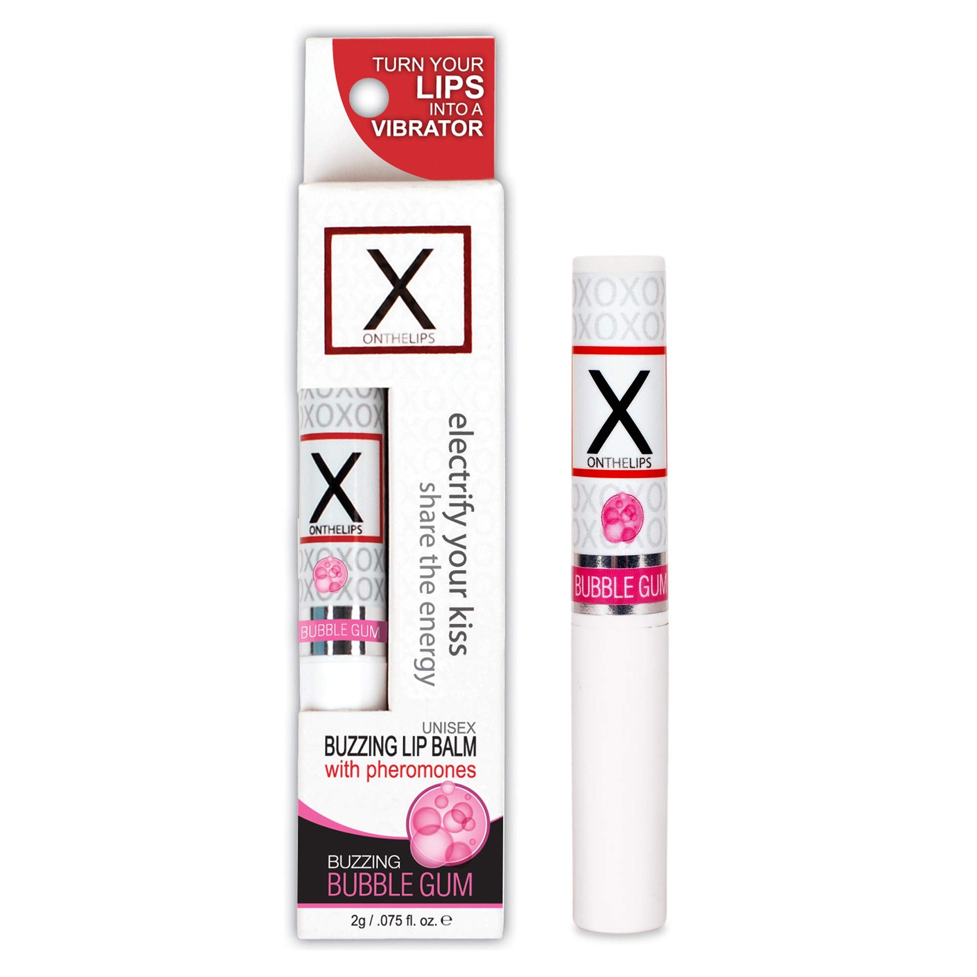 Turn your lips into a vibrator. X On the Lips Bubble Gum unisex buzzing lip balm from Sensuva. A unique, buzzing lip balm infused with gender-friendly pheromones that leaves an electrifying kiss impression that someone will never forget. How to use: apply