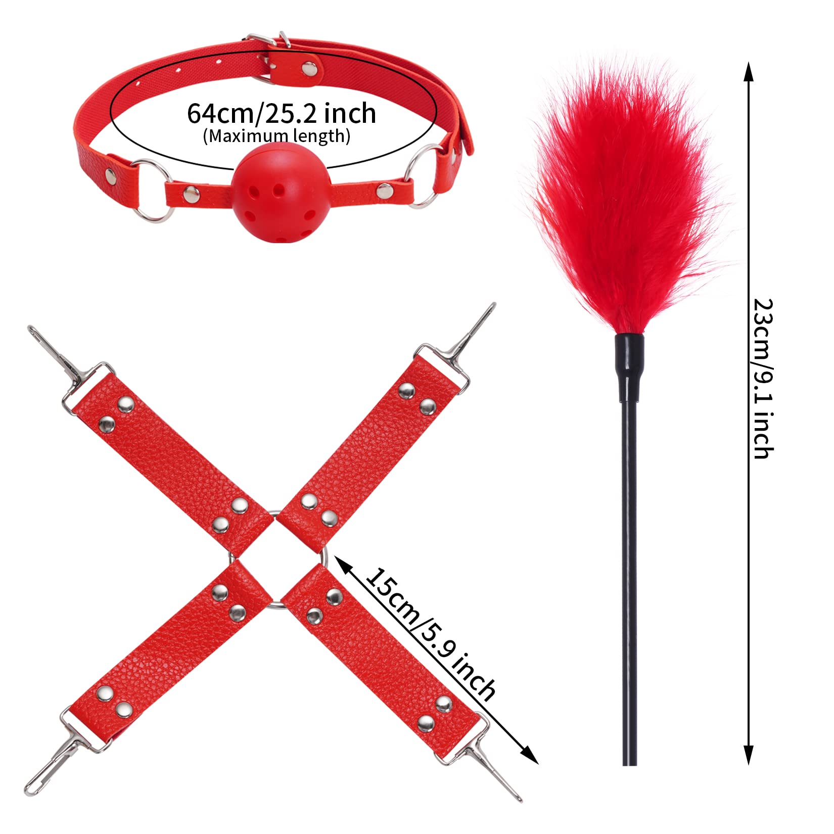 Q: Is this product safe to use?A: Yes, all items in the kit are made from non-toxic materials and designed for safe use, with features like padded cuffs to prevent discomfort.