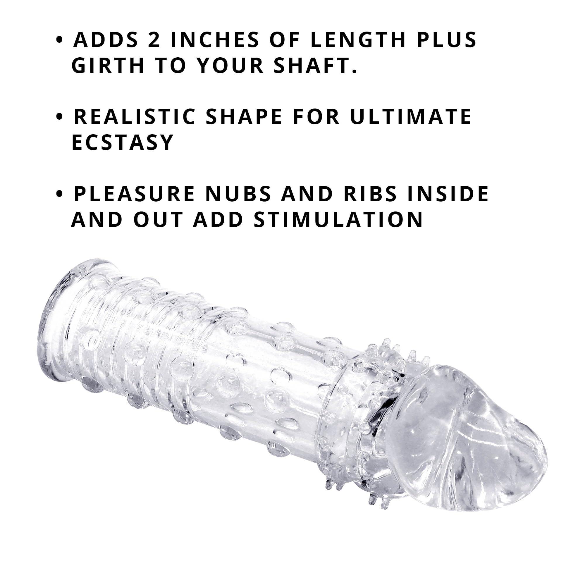 Q: How much length does this penis sleeve add?A: This penis sleeve adds a full 2 inches of length, allowing for a more satisfying experience during intimate moments.