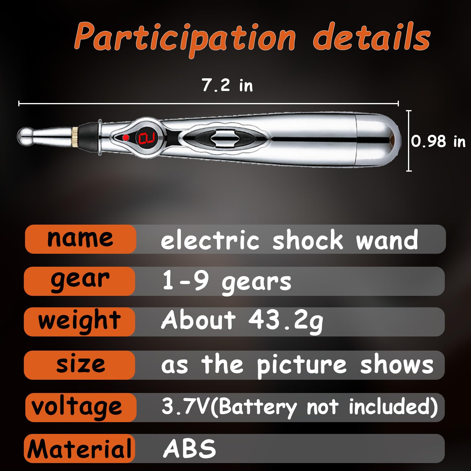 Q: How do I use the electric shock wand effectively?A: To use the wand, press the up button to activate it, then touch the pen tip to the desired area of the skin while making contact with another area to complete the circuit, creating the electric sensation.