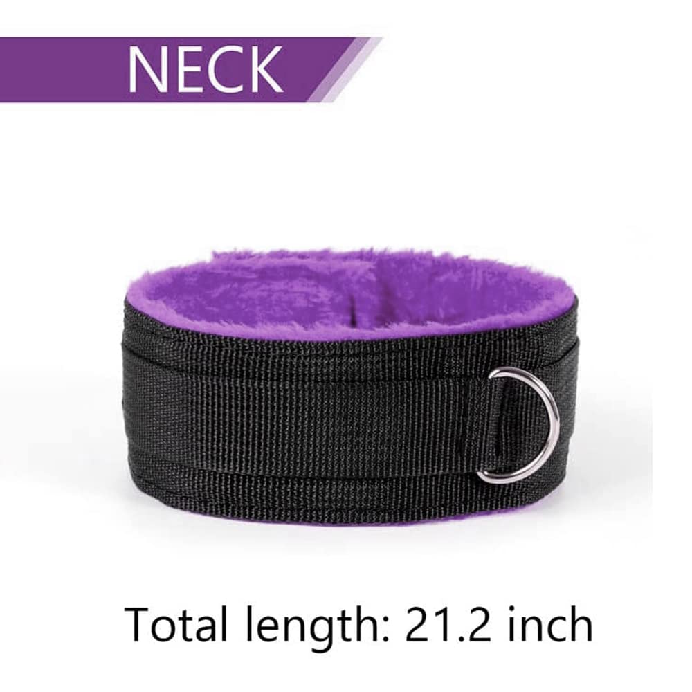 Q: Are the cuffs adjustable for different sizes?A: Yes, the cuffs and collar in the BDSM restraints set are adjustable in size, making them suitable for both men and women.