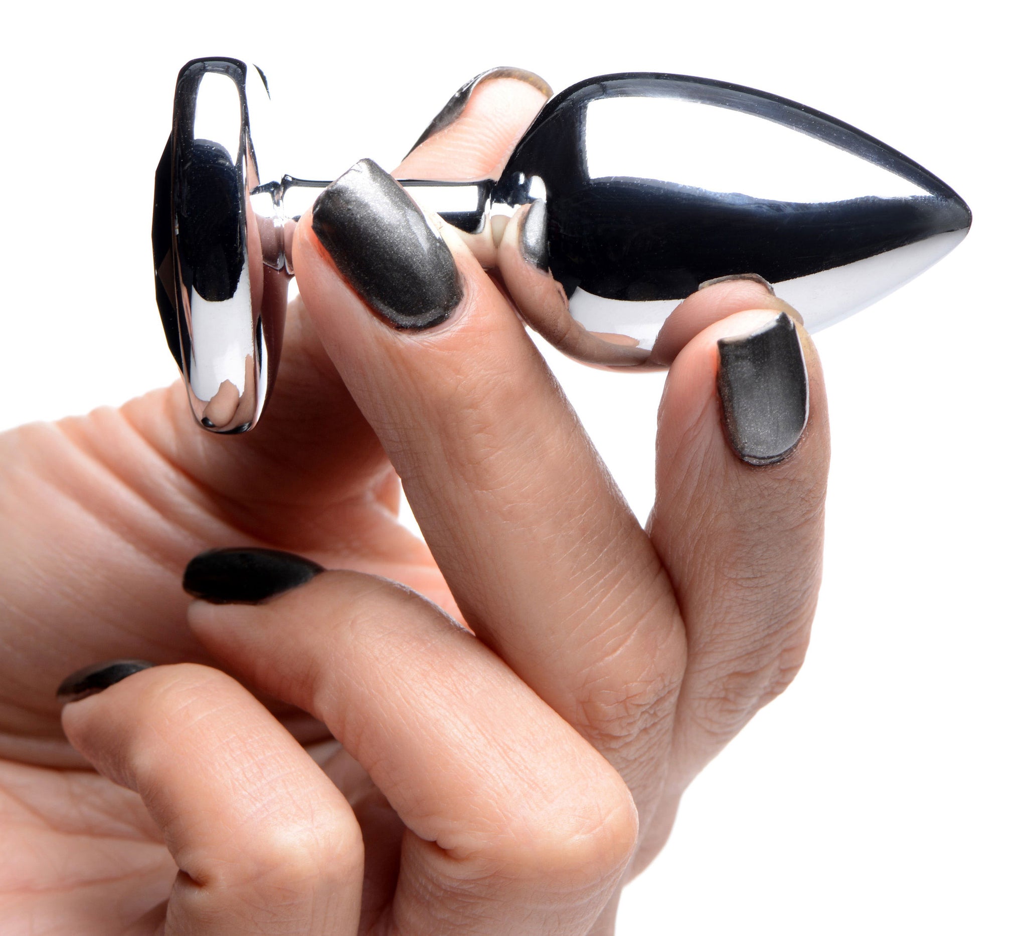 A: The Black Heart Gem Anal Plug is small, with an overall length of 2.8 inches, an insertable length of 2.3 inches, and a widest diameter of 1 inch.