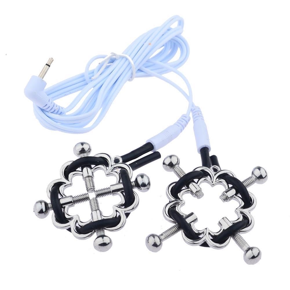 Q: What materials are the Electric Shock Nipple Clamps made from?A: The Electric Shock Nipple Clamps are made from high-quality skin-friendly metal, ensuring durability and comfort during use.