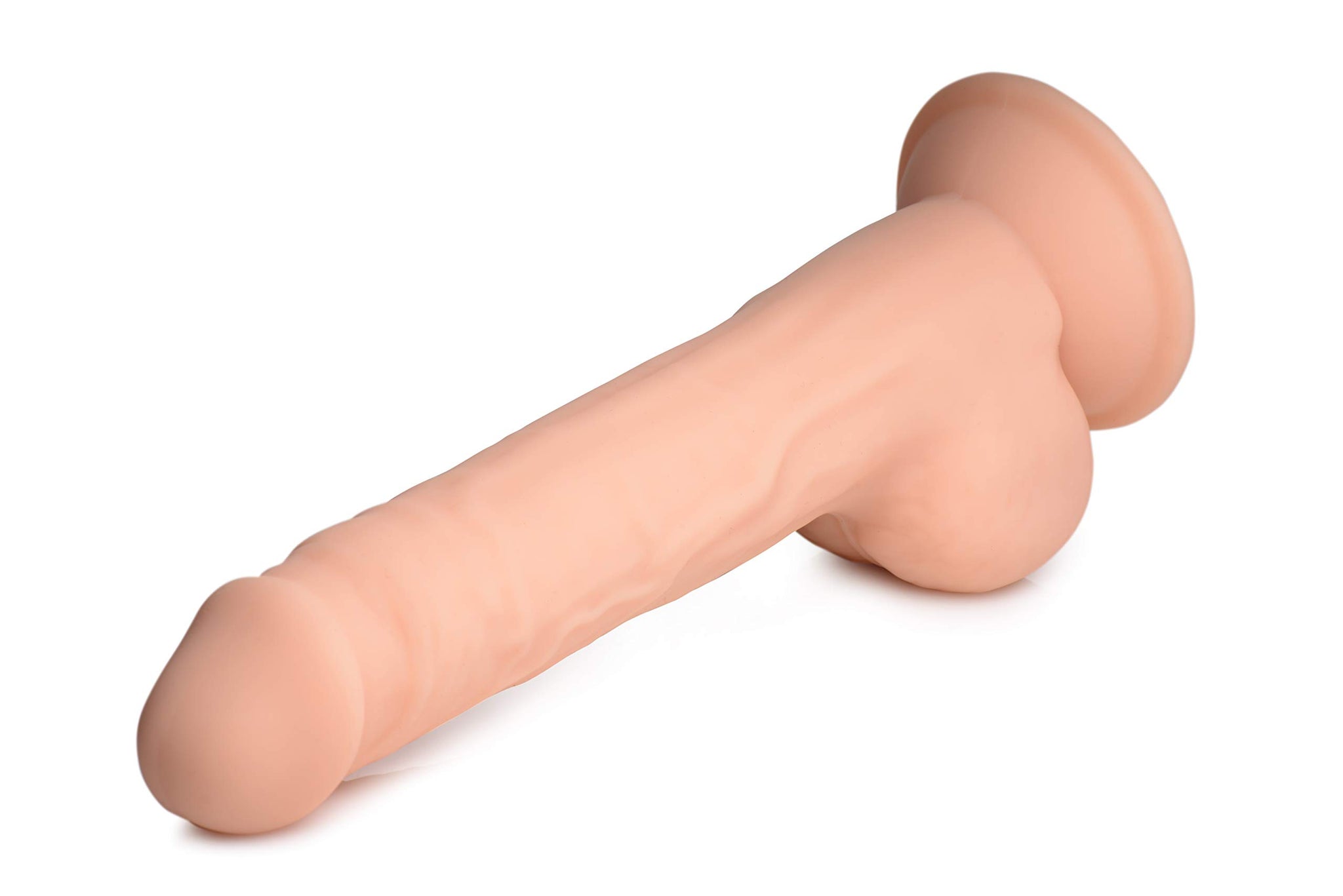 Fleshstixxx 9 inches Silicone Dong with Balls from Curve Toys. 100% Silicone sleeve with Silexpan core. Bendable, flexible, soft Silicone dong. Phallic head and sculpted veins feel like the real thing. Strong suction cup sticks to any flat surface. Can be