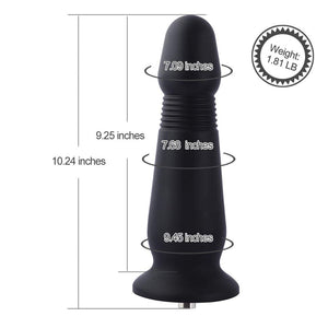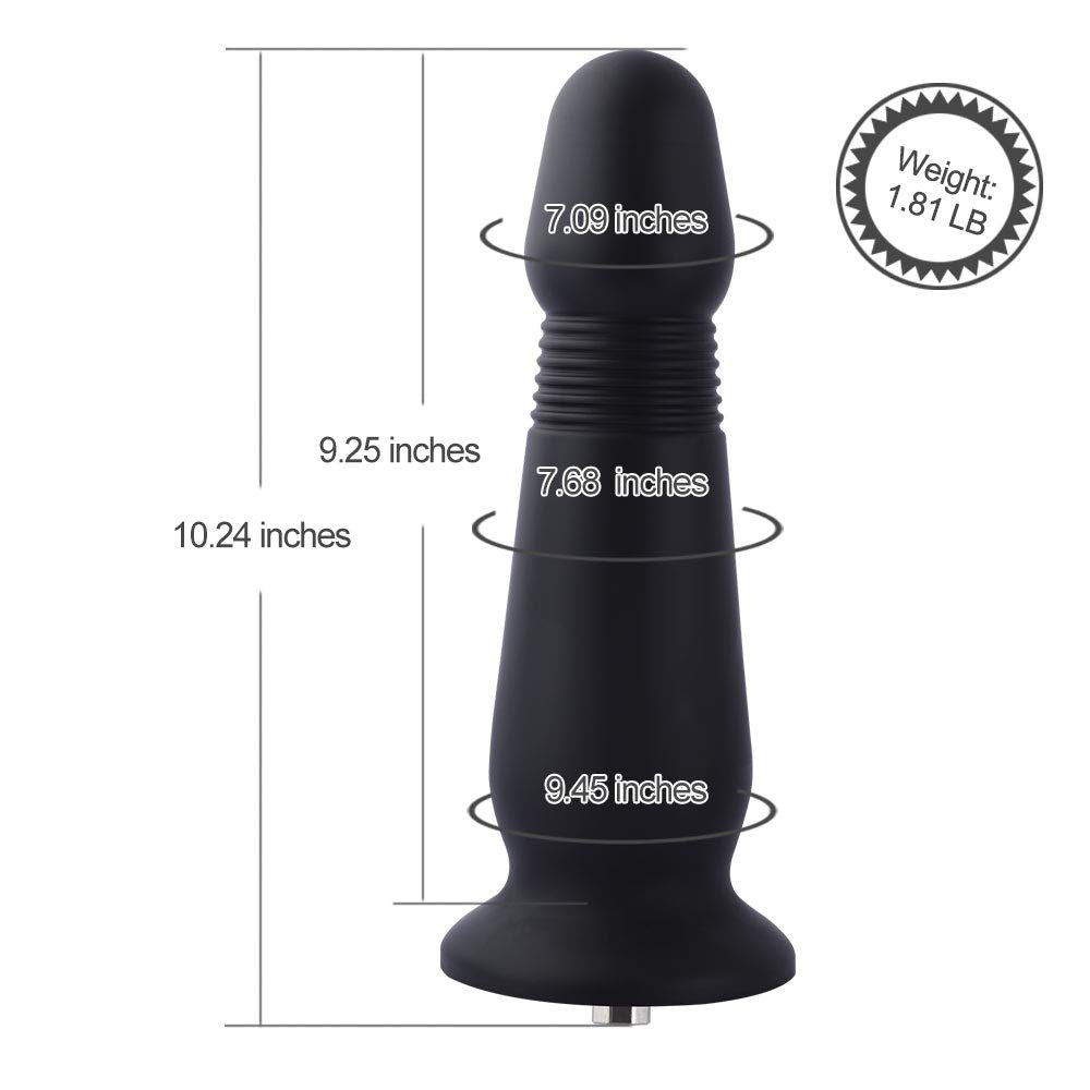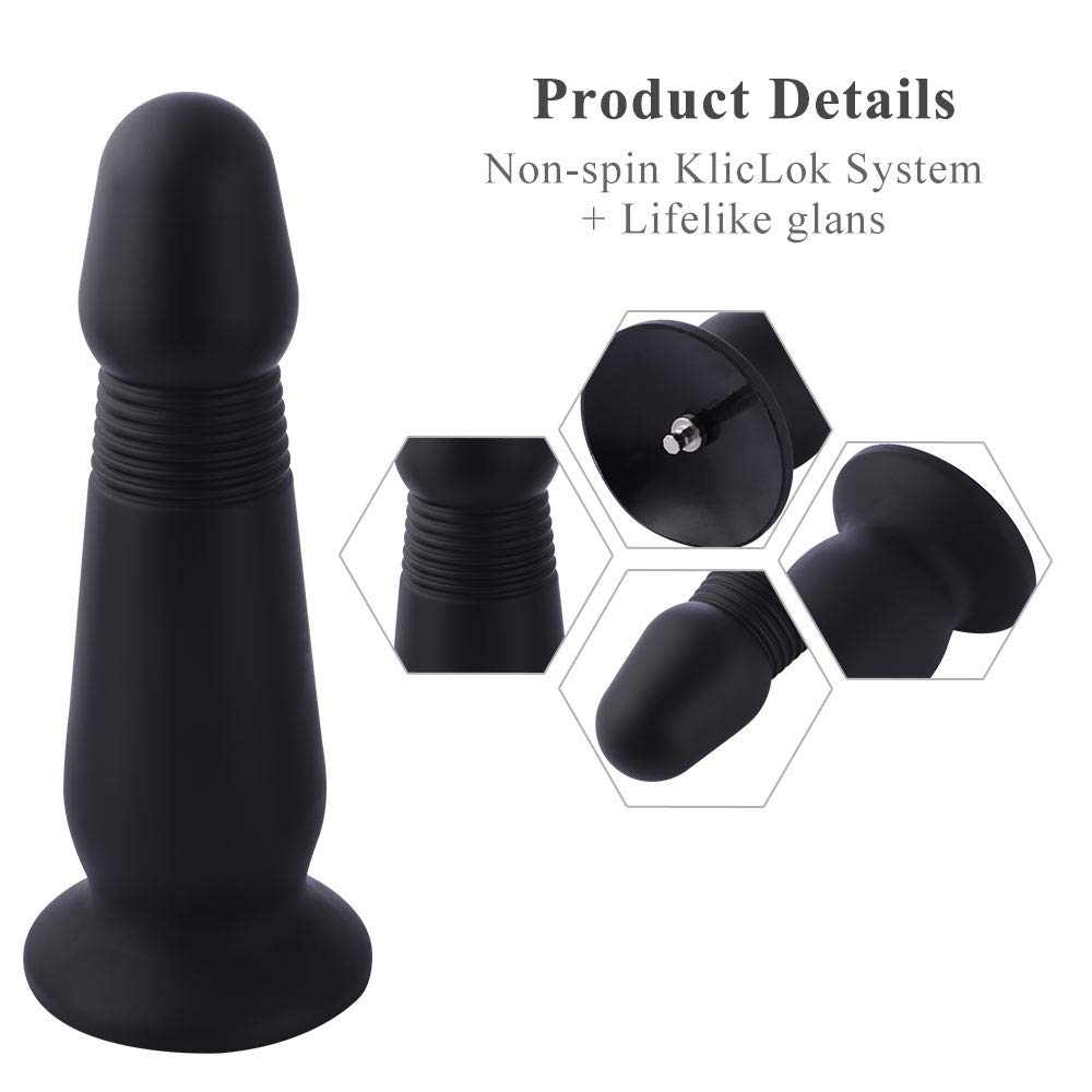 Hismith is a design, development, and production of an integrated company. we focus on high-end sex machine design and production. Our goal is to help our customers pursue ultimate pleasure in their private life. Our business philosophy is symbiosis and win-win with other brands. PRODUCT DETAILS: Material:100% Premium silicone Color: Black Dildo Total Length: 10.24 '' inches Insert-able length: 9.25 inches Diameter: 2.91 inches Dildo Net Weight: 1.81 LBS PACKING LISTING: 1 x Hismith 10.24 '' Grenade Silicone Anal Plug with KlicLok system NOTE: 1 * You should use some lubricant before playing with this sex toy. 2 * Please do not silicone-based lube, as that may damage the premium dong. 3 * Please air dry after cleaning, and store in a cool dry place out of direct sunlight. 4 * Never put PVC silicone toy with the premium dong, they will produce a chemical reaction and damage both of them. What is KlicLok System ---KlicLok system is an Eight-square connector, designed for non-spin thrusting. More steady than other connector systems, keep attachments in position, and says no to the rotation. ---KlicLok System is a quick connect and release coupling solution, that helps user replace attachments in a short time, truly unusual convenience and quickly DECLARATION: All product data are collected by manual measurement, for reference only! Besides, This product is only compatible with Hismith Premium Sex Machine with KlicLok System Love Machine.