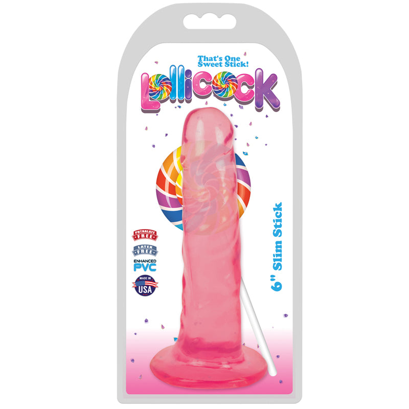 Q: What material is the 6 Inch Slim Stick Cherry Ice Dildo made from?A: The 6 Inch Slim Stick Cherry Ice Dildo is made from phthalate and latex-free PVC, ensuring a body-safe experience.