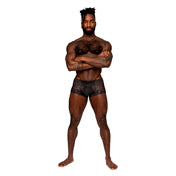 From The Sassy Lace Collection By Male Power The Mini Short Sheer Pouch Features A Low Cut Scallop Edged Waist High Cut Scalloped Edged Legs And A Sheer Mesh See Thru Pouch.Scallop Edged Floral Stretch Lace Joins Sheer Stretch Mesh And Solid Nylon Stretch Paneled Inserts.Materials: 90% Polyamide 10% Spandex