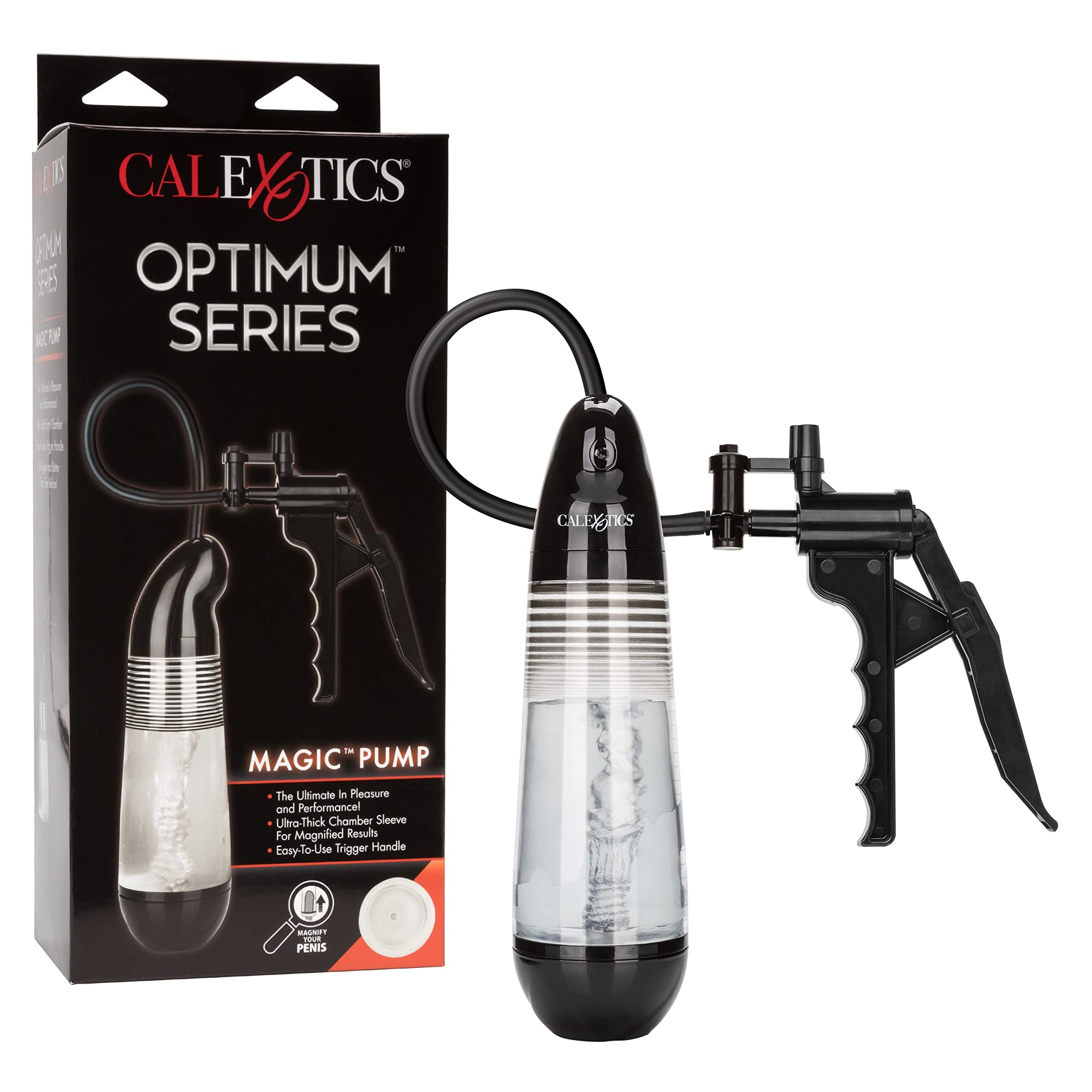 Upgrade Your Pleasure Tool With Calexotics Optimum Series Magic Pump. This Comprehensive System Is A Must-Have For Serious Or Novice Pumps. The Sleek Hand Pump System Has Been Created To Provide The Ultimate Pumping Experience With An Easy-To-Use Trigger Handle, Ultra-Thick Open Ended Chamber Sleeve And A Quick Release Air Valve. The Powerful Pumper Was Developed To Increase Endurance, Improve Stamina And Amplify Your Pleasure Rod. Step Up Your Pump Game And Never Settle Than Less When It Comes To Size Or Pleasure.The Magic Pump Includes A Clear Pump Chamber With Incremental Indicator Marks To Track Progress And An Ultra-Thick Ribbed Chamber Sleeve To Provide The Ultimate In Comfort And Pleasure. Remove The Ultra Thick Stroker Sleeve From The Pump To Get Extra Playful With The Stretchy, Textured Chamber And Enjoy Explosive Results.The Cylindrical Pump Is Designed To Slide Comfortably Over And Create The Perfect Suction With The Squeeze Of The Trigger. Once Youave Reached Peak Suction, Use The Quick Air Release Button To Release The Seal Or Decrease Pressure. When Used Correctly, This Sensational Pump Can Increase Girth, Sexual Stamina And Erotic Pleasure. Whether Youare A First Time User Or Experienced Pumper, Our Erotic Enhancement Essential Set Has You Covered.Why Choose Calexoticssince 1994, Calexotics Has Been The Worldas Leading Pleasure Products Manufacturer And Is Dedicated To Being A Consumer-Friendly Brand For Men And Women. We Understand That To Truly Encourage Sexual Wellness, The Intimate Toy Industry Needs To Create Products That Enhance Pleasure In Your Everyday Life And Cultivate A Happier And More Satisfied You.Calexotics Has Taken The Very Limited Intimate Toy Options From The Past And Created A World Of Pleasure Products For Men, Women And Couples. By Revolutionizing The Way We See Intimate Products, Calexotics Has Been Able To Help Everyone Find Confidence In Their Sexuality And Promote Sexual Self-Awareness. At Calexotics, We Want You To Expect More. Expect More Passion, Expect More Romance And Always Expect More Fun.