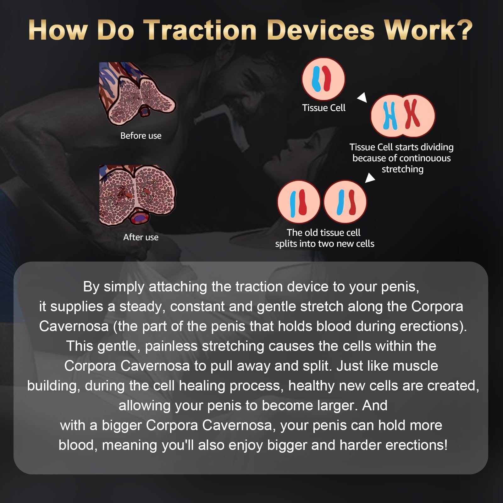 Q: How does the penis stretcher device work?A: The device works by applying gentle traction to the penis, promoting elongation over time. It is designed to be easy to wear and can be used discreetly.