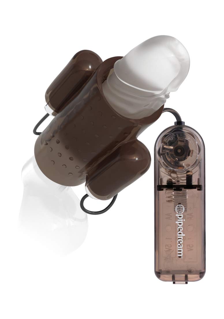 Classix Dual Vibrating Penis Sleeve Smoke From Pipedream Products. Double The Pleasure And Double The Fun, Two Vibrating Bullets Are Always Better Than One! Stimulate Your Cock Like Never Before. Two Vibrating Bullets With A Textured Sleeve Stretches For Maximum Comfort And Proven Results. You Will Be Amazed By The Incredible Sensations! The High Intensity Vibrations Will Tickle And Tease And Send Incredible Sensations All The Way Down Your Shaft! Cleanup Is A Snap After The Fun With Toy Cleaner And Warm Water. Use Plenty Of Moist For An Extra Wet And Wild Encounter! Features: Dual Vibration. Textured Sleeve. Multi-Speed. Vibrating Penis Sleeve Requires 2 Aa Batteries, Not Included.