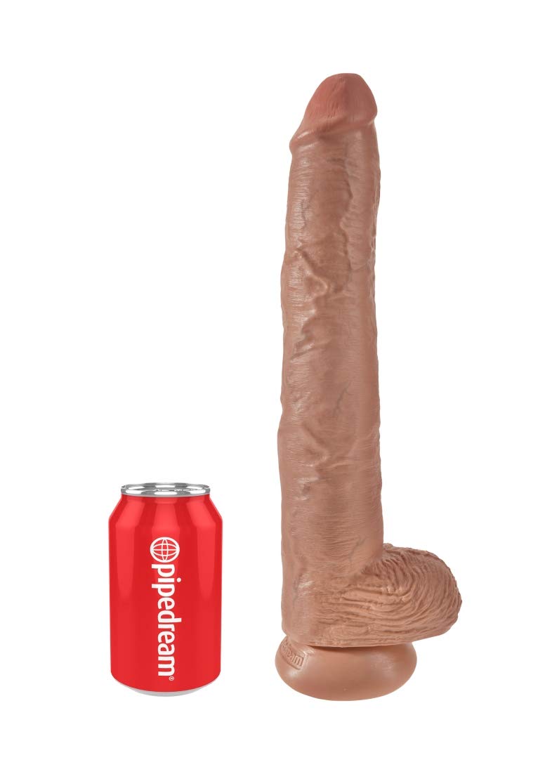 King Cock 14 Inches Cock With Balls Tan Dildo. Do You Want Your First Dildo To Look And Feel Just Like The Rock Hard Stud You Have Always Fantasized About? Stop Dreaming And Get Down With The King! Every Vein, Every Shaft, And Every Head Is Carefully Handcrafted With Exquisite Detail To Give You The Most Realistic Experience Ever Imagined. The Powerful Suction Cup Base Sticks To Nearly Any Flat Surface And Makes Every Dildo Harness Compatible. Made In Pipedreams State Of The Art Rubber Manufacturing Facility, Every King Cock Is Made Using Latex Free, Body Safe And Hypoallergenic Pvc. Best Of All, King Cock Is Proudly Made In The Usa So You Can Enjoy Every Masterpiece With Confidence. Size Length 14 Inches, Width 2.37 Inches. 12 Inches Insertion Length. Video Added.
