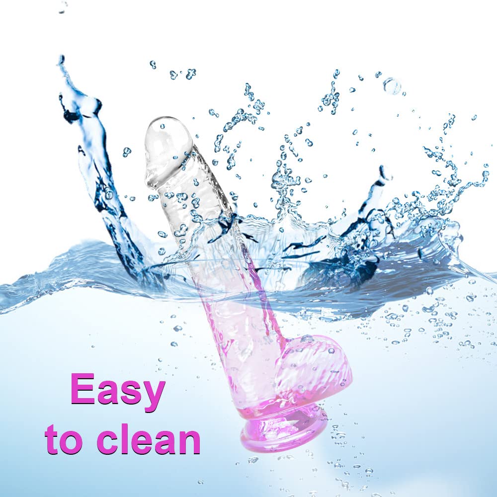 Q: What material is the Realistic Clear Cute Purple Dildo made of?A: The Realistic Clear Cute Purple Dildo is made from TPE, which is a soft, pliable, non-toxic, and odorless material.