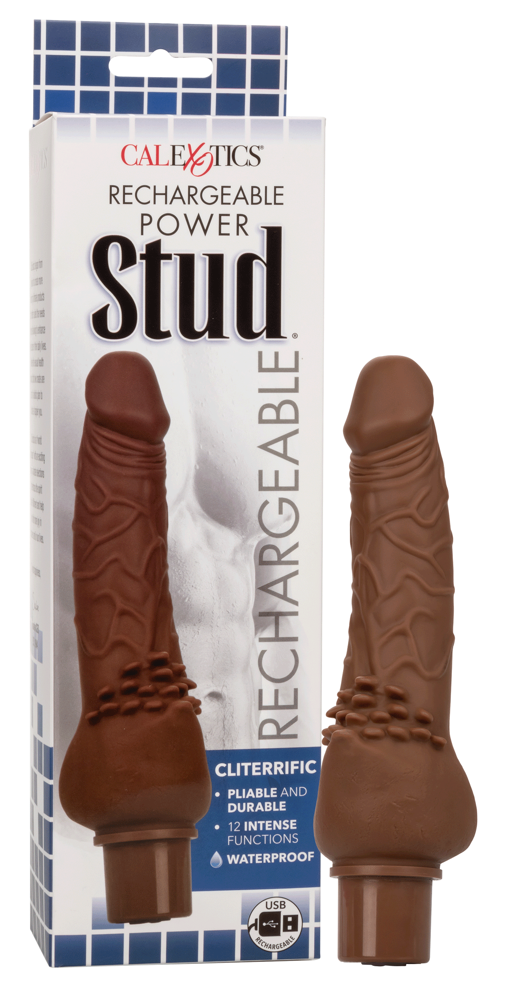 Rechargeable Power Stud Cliterrific Brown Vibrator from California Exotic Novelties. Thrust yourself towards earth shaking pleasure with the rumbling Rechargeable Power Stud Cliterrific. The power packed extra large vibrator features a flexible real feel