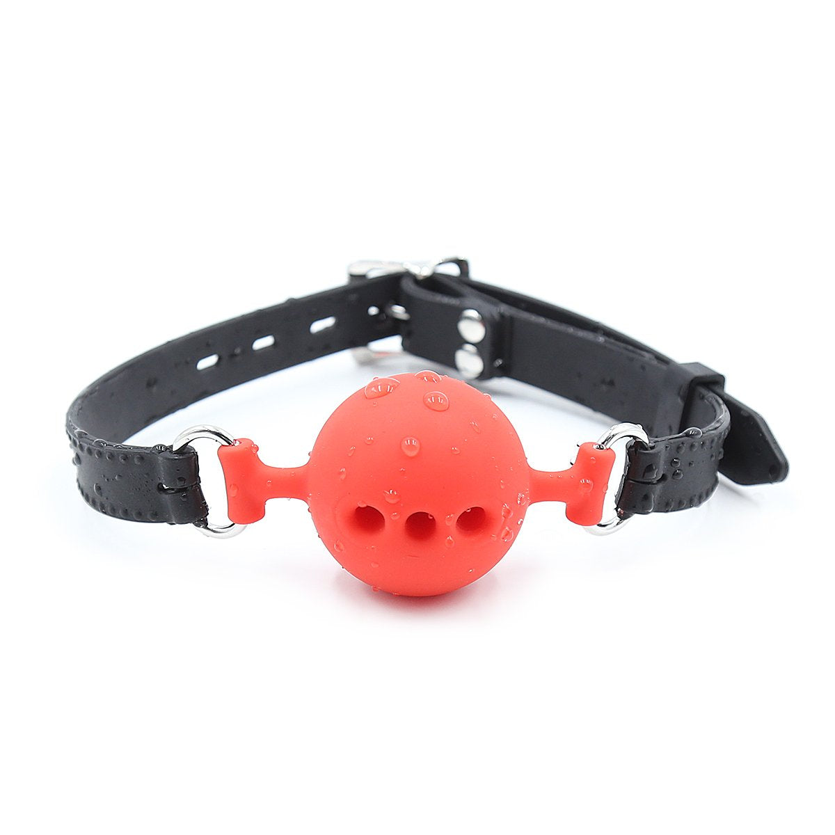 Q: What safety features does this gag have?A: The breathable holes are a key safety feature, ensuring airflow while keeping the gag securely in place, allowing for safe use during play.