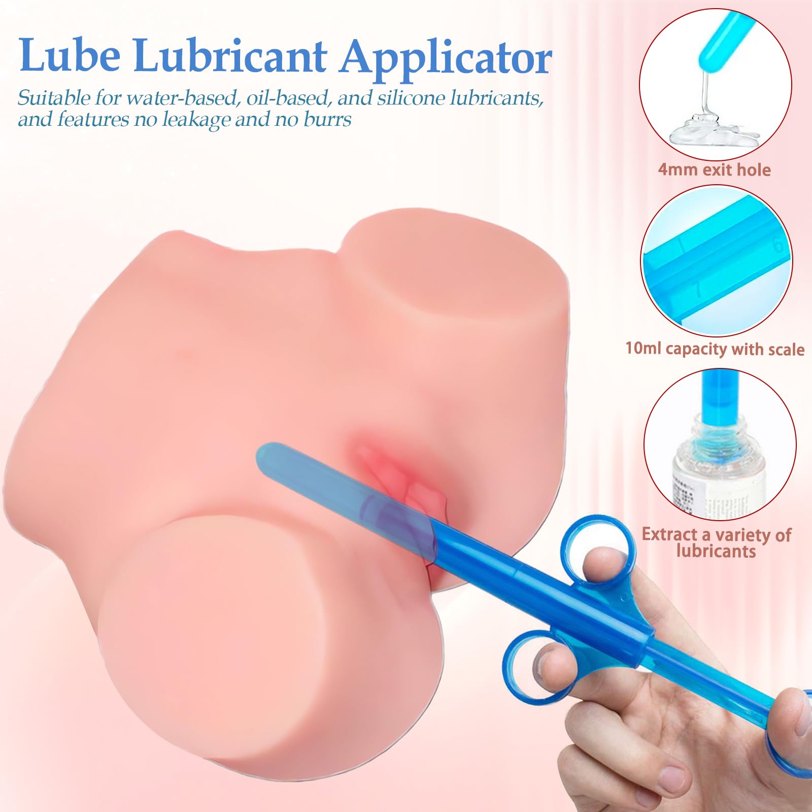 Q: Can I use the lubricant applicator for other types of toys?A: Yes, the lubricant applicator can be utilized for various adult toys. Its precise 10ml scale allows for accurate dispensing of lubricant, making it suitable for any application where lubrication is needed.