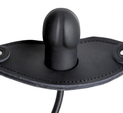 This Inflatable Dildo Gag Is Sure To Keep Your Plaything In Pleasured Silence With Its Expandable Penis Head Shaped Gag, And Comfortable Leather Head Straps. The Gag Is Inflated By Means Of A Pressure Bulb, Easily Pumped By Hand. To Deflate, Just Turn The Pressure Dial For A Quick Release. This Devious Piece Is Held In Place By Adjustable Leather Straps, Secured By A Buckle That Accepts Any Small Standard Lock If You Wish To Secure Them Further. The Gag Itself Is Made Of Odorless, Tasteless, Phthalate-Free Silicone. Measurements: Strap: Fits Heads Between 16 Inches And 21 Inches In Circumference, 0.75 Inches In Width; Gag Deflated: 2.25 Inches In Length, 1.5 Inches In Diameter; Gag Inflated: 2.5 Inches In Length, 2 Inches In Diameter. Material: Silicone, Leather, Metal. Note: Locks Not Included.