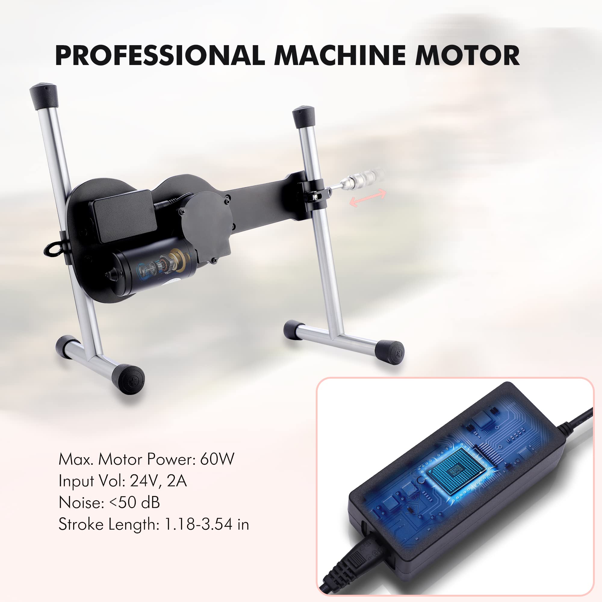 PRODUCT PARAMETERS: Power Input: 100V-240V, 2A Output: DC 24V-2A Motor Power: 60W Noise: 30 - 50 dB Connector Type: Ezfunlok Connector Stroke Length: Approx. 1.18 - 3.54 inches Adjusting Angle: Approx. 0 - 80 degree PACKAGE INCLUDING: 1 x Sex Machine 1 x Standard Dildo 1 x Suction Cup Adapter 1 x Blue Silicone Dildo 1 x Wireless Remote 1 x User Manual ATTENTION: 1. Please make sure power cable is switch off before plug in the socket. 2. Speed change back to starting basic speed if press modes first and then speed up/down. 3. 5% speed up/down for each time if press the speed button for a time. SOMETHING IMPORTANT SECURITY WARNING AND USEFUL TIPS: 1. Keep the circuit part away from the water, avoiding circuit faults. 2. Please do not try to hold back the telescopic shaft when the machine is working. 3. Please don 't sit at the machine completely, that may damage the machine stand. 4. It is normal to get warm when machine is working, we suggest not use the machine continuously over 60 min. 5. It is necessary to use some lubricant and condom to improve your pleasure.