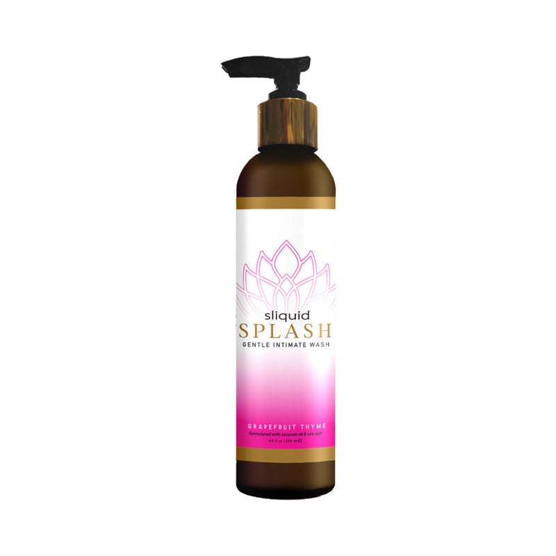 Q: What is Sliquid Splash Grapefruit Thyme Feminine Wash?A: Sliquid Splash Grapefruit Thyme Feminine Wash is an 8.5 oz gentle and rash-free intimate wash designed as an alternative to traditional soap and water.