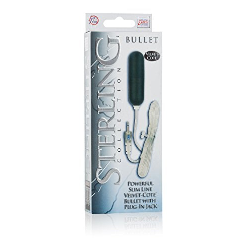 Sterling Collection Velvet Slimline Bullet comes with a cord plug-in jack. Bullet vibrator is made using phthalate free, non-toxic materials ABS plastic with Velvet-Cote Polyurethane PU Cote. Please note this item does not come with a power supply or cont