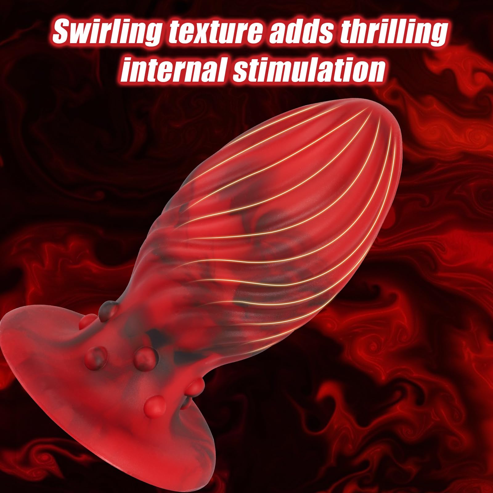 Q: What is the texture of the plug, and how does it enhance pleasure?A: The plug has a swirl texture that gradually increases in girth, enhancing sensation during insertion and providing a fulfilling playtime experience.