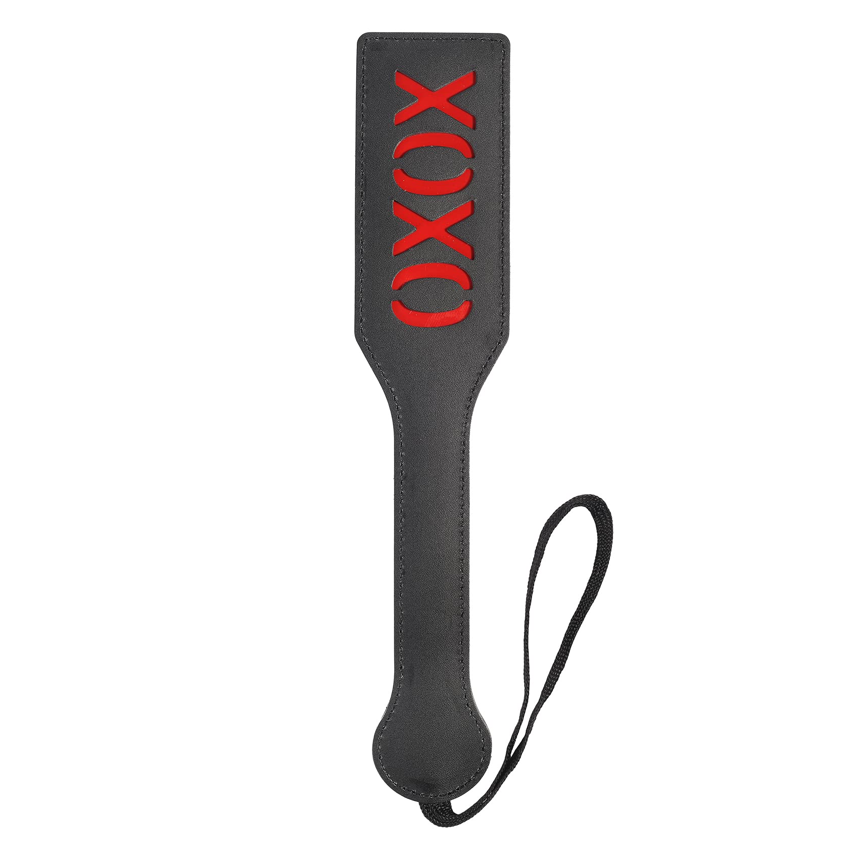 Black XOXO Faux Leather Paddle for Cosplay, Perfect for Beginners A special faux leather paddle with a logo surface for ear bending spanks at the flick of a wrist, deliver audible impact without too much force. Great for beginners who love to hear the sound of paddle, but aren 't quite ready for full throttle whacks yet. When you are ready for something a little harder, play around with the imprint-possibilities of this paddle. The cut-out portion leaves a perfect XOXO label on your sub 's fleshy bits when slapped with just the right level of force. Specifications of the XOXO Spanking Paddle: Material: Faux leather Color: Black Item Weight: 88g/3.1oz Item Size: 12.6x2.6x0.2inch Handle length: 6.7inch Wrist Loop Length: 6.3inch Package Includes: 1x Black XOXO Faux Leather Spanking Paddle Notice Please: The actual color may vary slightly from the online images due to different monitor settings. Please allow slight measurement deviation for the data.