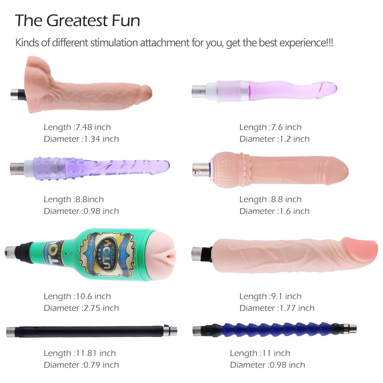 Q: What accessories are included with the Sex Machine Dildo Machine?A: The product comes with 8 accessories, enhancing its versatility for various experiences.