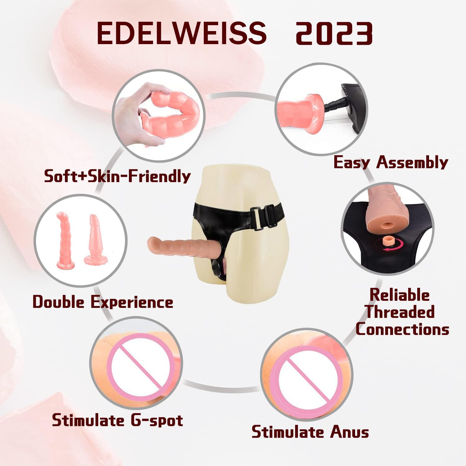 Q: What materials are used in the Strap-on Dildo?A: The Strap-on Dildo is made from high-quality medical silicone, which is non-toxic and skin-friendly. The harness is made of fine artificial leather, ensuring comfort and durability.