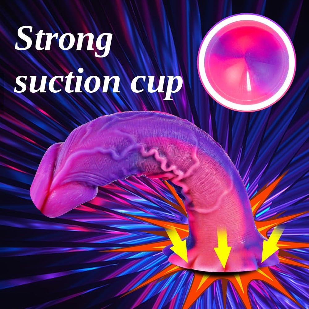 Q: What colors does the dildo come in?A: The dildo features a captivating blend of colors, specifically purple and pink, which adds to its aesthetic appeal.