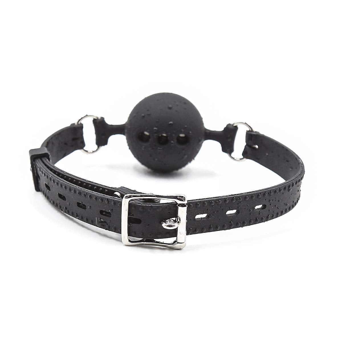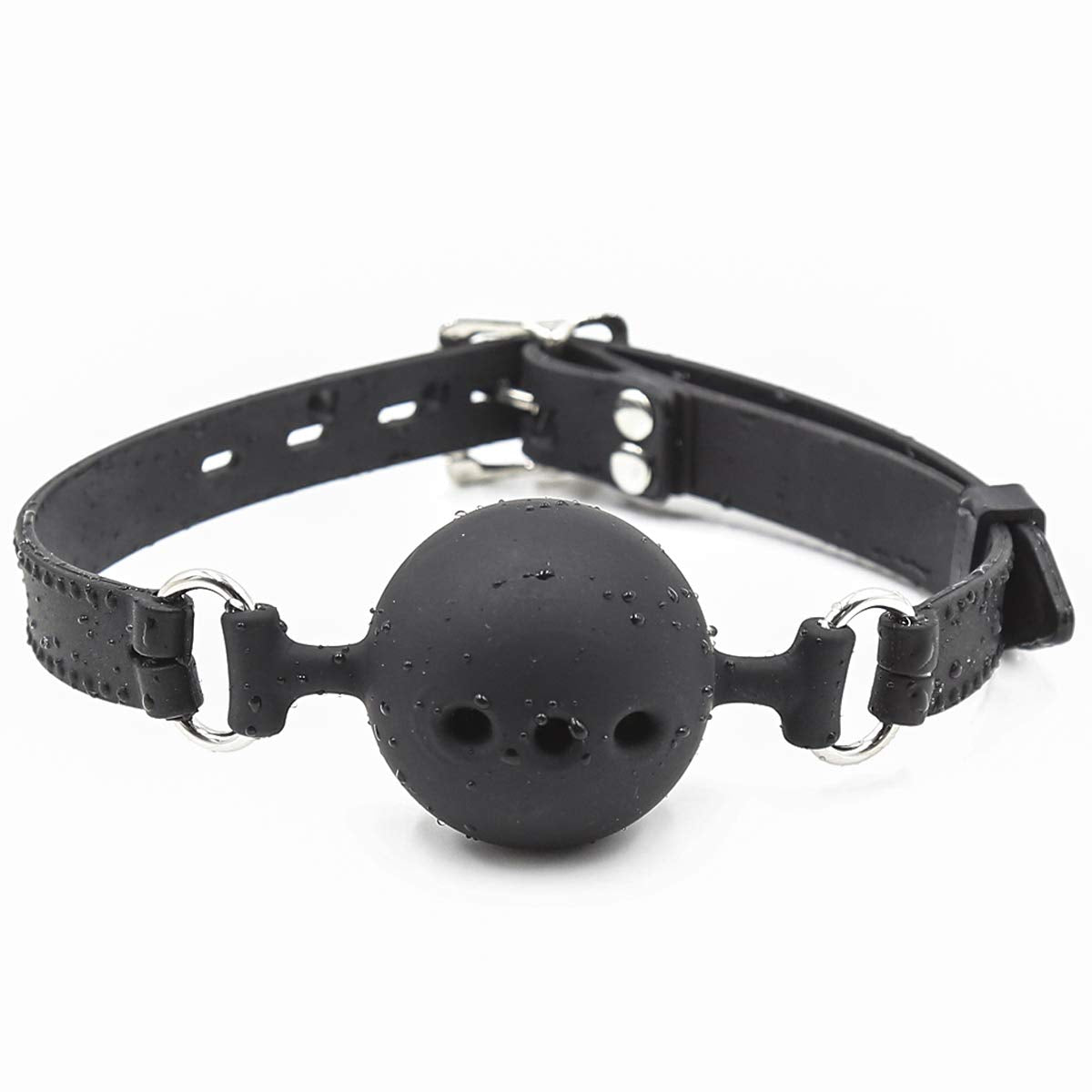 Q: How does the breathable design of this ball gag work?A: The gag features three breathing holes, allowing for comfortable airflow while wearing it.
