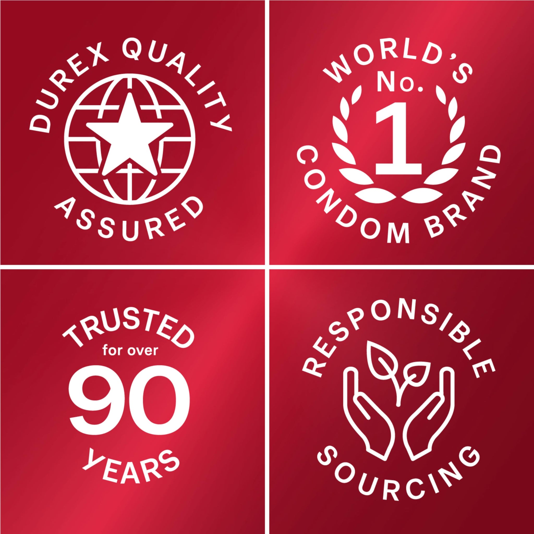 Q: What is the warranty or guarantee for these condoms?A: Durex does not specifically offer a warranty, but their quality control measures ensure that each condom is electronically tested for safety and reliability.