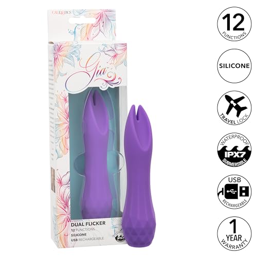 Introducing the Gia?Dual Flicker, a sophisticated stimulator designed to provide unparalleled pleasure. Featuring dual teasers for enhanced stimulation, this sleek vibrator is perfect for those who seek a multi-faceted sensory experience that excites and delights.The massager offers 12 functions of vibration, pulsation, and escalation, allowing you to explore a wide array of sensations. Made from body-safe silicone, it feels incredibly smooth against your skin and is 100% waterproof with an IPX7 rating, making it ideal for adventurous play in the bath or shower.Designed for convenience and pleasure, it is equipped with a state-of-the-art memory chip that resumes on your last used function, ensuring a seamless transition into bliss. The security travel lock feature prevents accidental activation, providing peace of mind when on the go. Simply hold the button for 3 seconds to turn the device on or off, making it easy to use whenever you desire.USB rechargeable, the Gia?Dual Flicker is convenient and easy to use. A full charge takes just 1.25 hours, delivering up to 40 minutes of high-speed pleasure or 55 minutes on a lower setting. Experience the perfect blend of power, versatility, and luxurious design with the Gia?Dual Flicker, and let its dual teasers take your pleasure to the next level.
