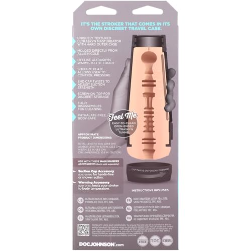 Allie Nicole has joined the Main Squeeze lineup with a variable pressure hard-case stroker molded directly from her body. Handcrafted in lifelike ULTRASKYN, Allie's Main Squeeze features a tight, textured interior that warms to the touch and feels just like the real thing.?Uniquely Textured ULTRASKYN Masturbator with Hard Outer Case?Molded Directly from Allie Nicole?Lifelike ULTRASKYN Warms to the Touch?Squeeze Plate Allows User to Control Pressure?End Cap Twists to Adjust Suction Strength?Screw-on Top for Discreet Storage?Fully Disassembles for Cleaning?Phthalate-Free, Body-Safe