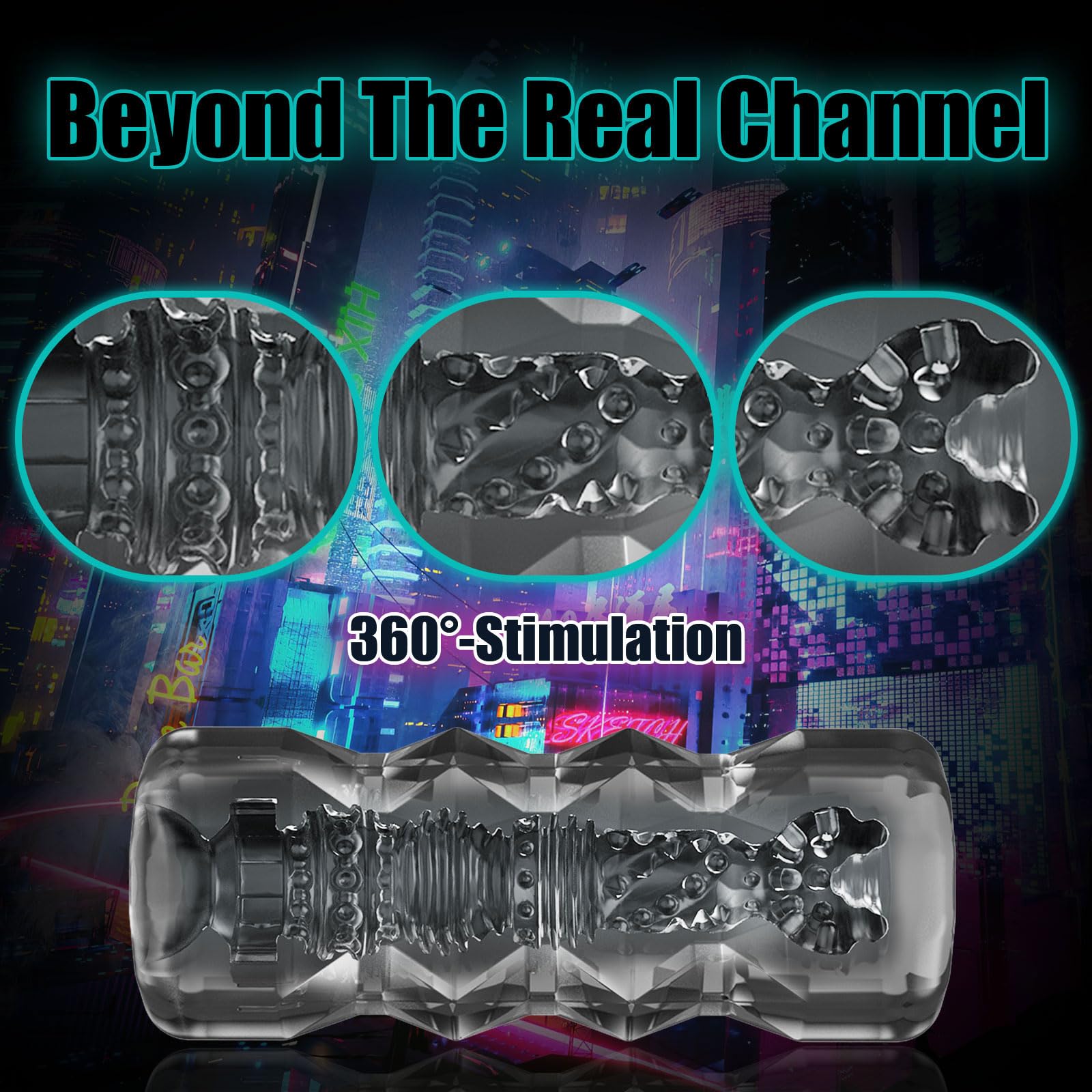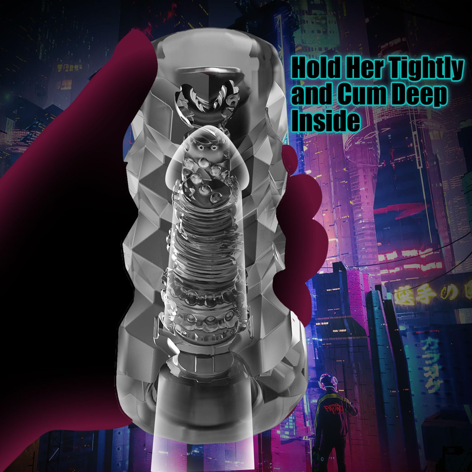 ?Reusable Male Masturbator?This portable male masturbator satisfies all male desires. Its diamond-cut design is eye-catching, while the thick inner wall and 3D textured tunnel provide a realistic sexual experience. It also comes with a storage container for convenient post-use storage.
