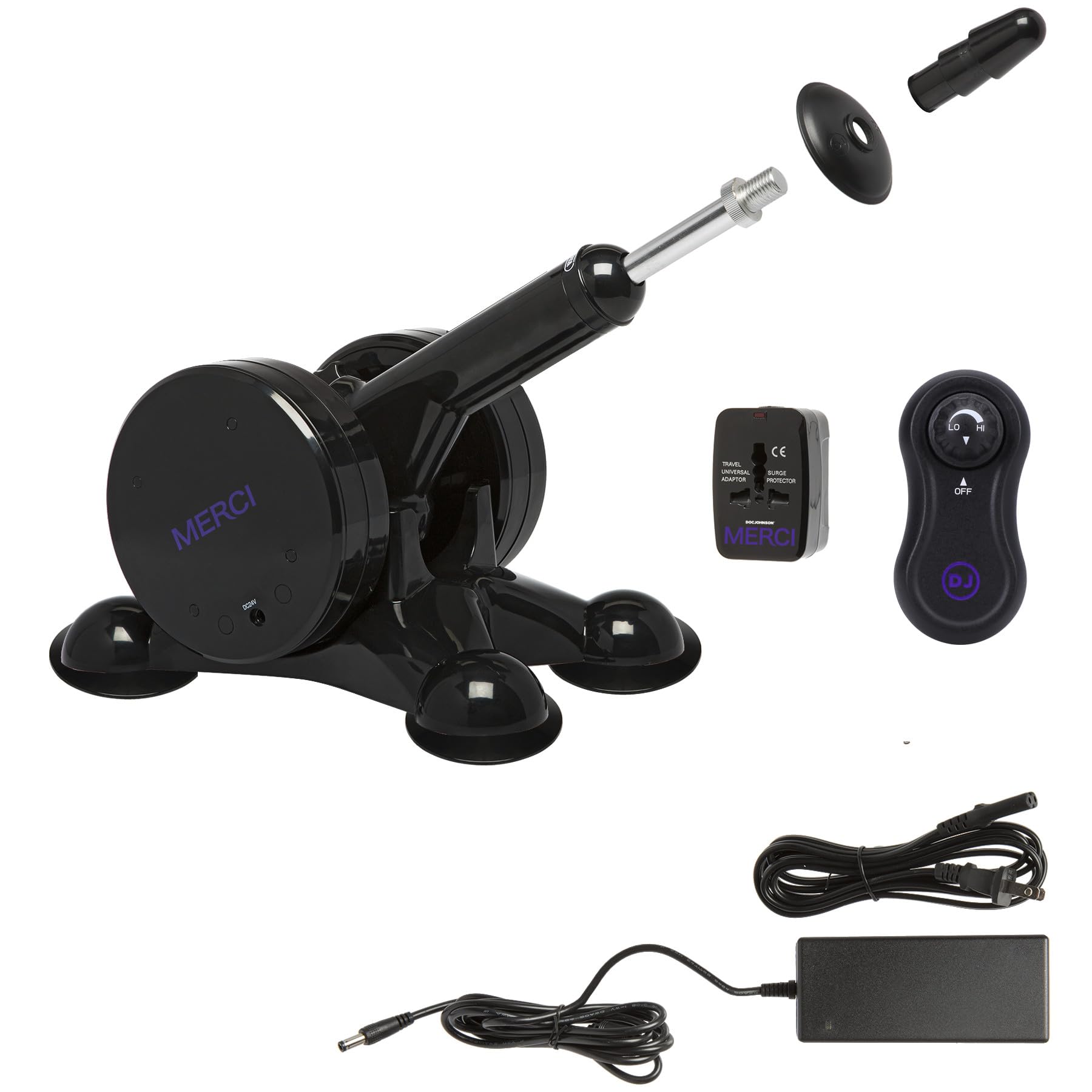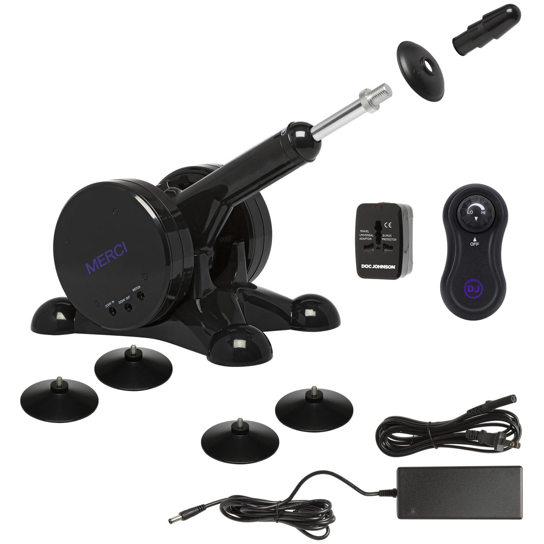 The Merci Power Banger Fuck Machine delivers superior power and endless deep pleasure. The strong machine's adjustable thruster arm can be angled to give you what you want in all your favorite positions, while four strong suction cups at the base keep it securely in place. The speed control dial puts you in complete control: the variable speed dial allows for thrusting speeds as slow as 28 strokes per minute, up to 195 strokes per minute. An included Vac-U-Lock Plug makes it able to use with attachments in Doc Johnson Vac-U-Lock and Signature Cocks lines, in addition to any other attachments with VUL compatibility.Features:Handheld Controller Powers On/Off and Adjusts SpeedAdjustable Arm for Precise PositioningIntense Multi-Speed Strokes - Stroke Length: 60mm (2.36 in.) - Up to 195 Strokes per MinuteIncludes Universal Power Adapter for International UseUse with Any Vac-U-Lock Compatible AttachmentAdjustable/Removable HandleFour Sturdy Suction Cups Keep Machine in PlaceAC 100-240V, 50-60HZ Universal Power Supply with US Power Cord