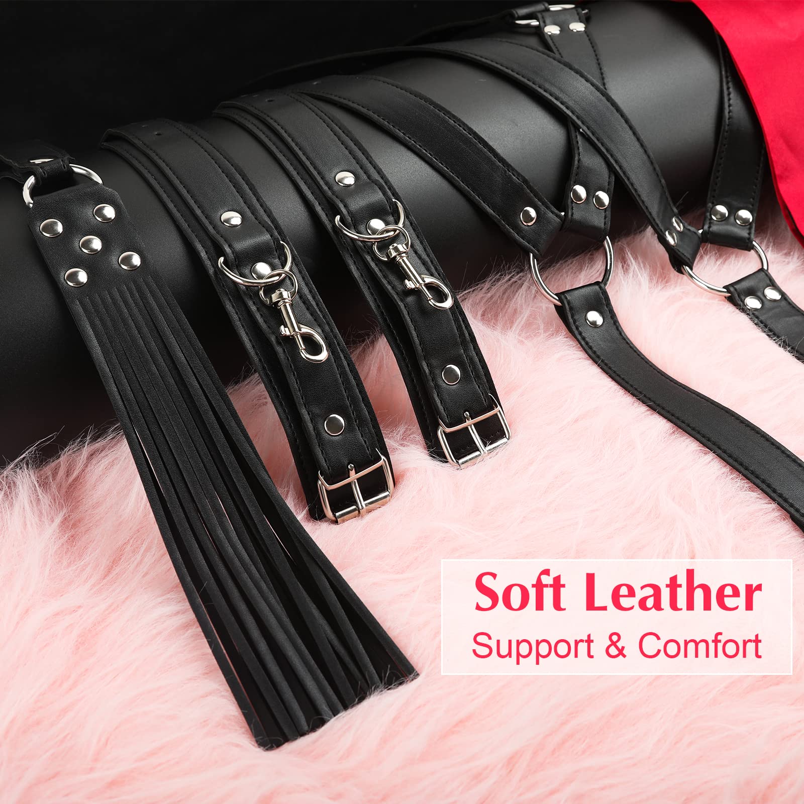 Sex Bondage BDSM Kit Restraints - 7PCS Set Neck to Wrist Behind Back Handcuffs Collar Waist Strap Blindfold Whip, Soft Leather Bondage Gear & Accessories, Adult SM Games Sex Toys for Men Women and Couples Slave Gameplay Tools