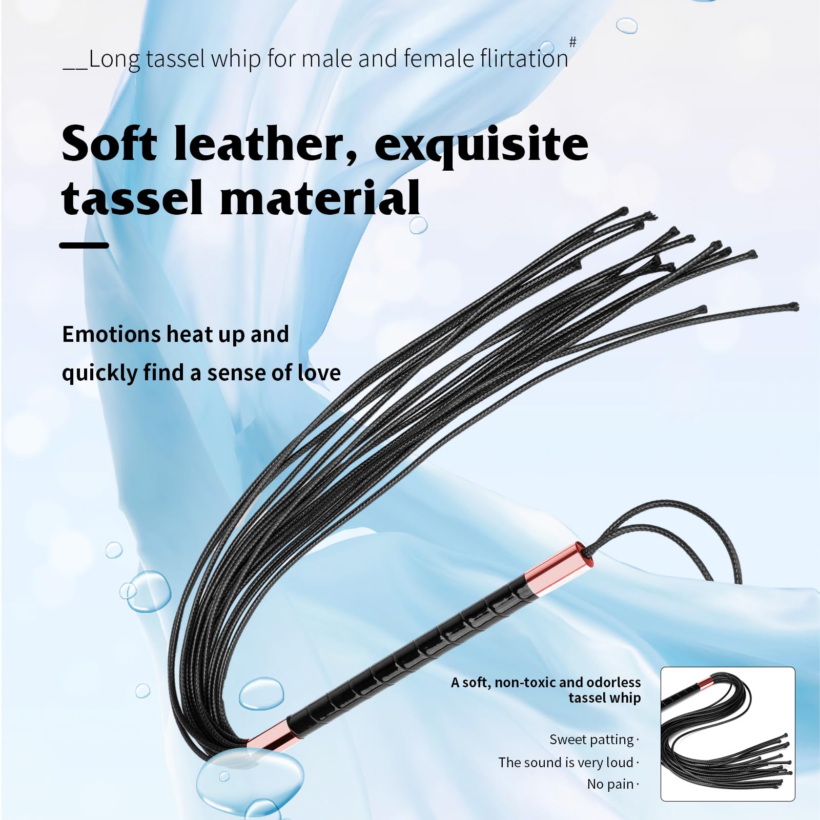 Q: What kind of stimulation can I expect from this whip?A: The whip provides various levels of stimulation, from gentle teasing to more intense sensations, depending on how you choose to use it.