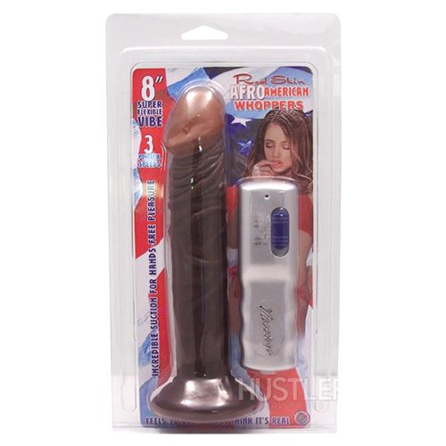 Afro American Whopper Vibrating 7 inches Brown Dong. Finally a dildo sculpted for the size feel and pleasure of the real thing! The Real Skin Afro American Whoppers 7 inches super flexible dong, feels so good you will think it is real! An incredible sucti