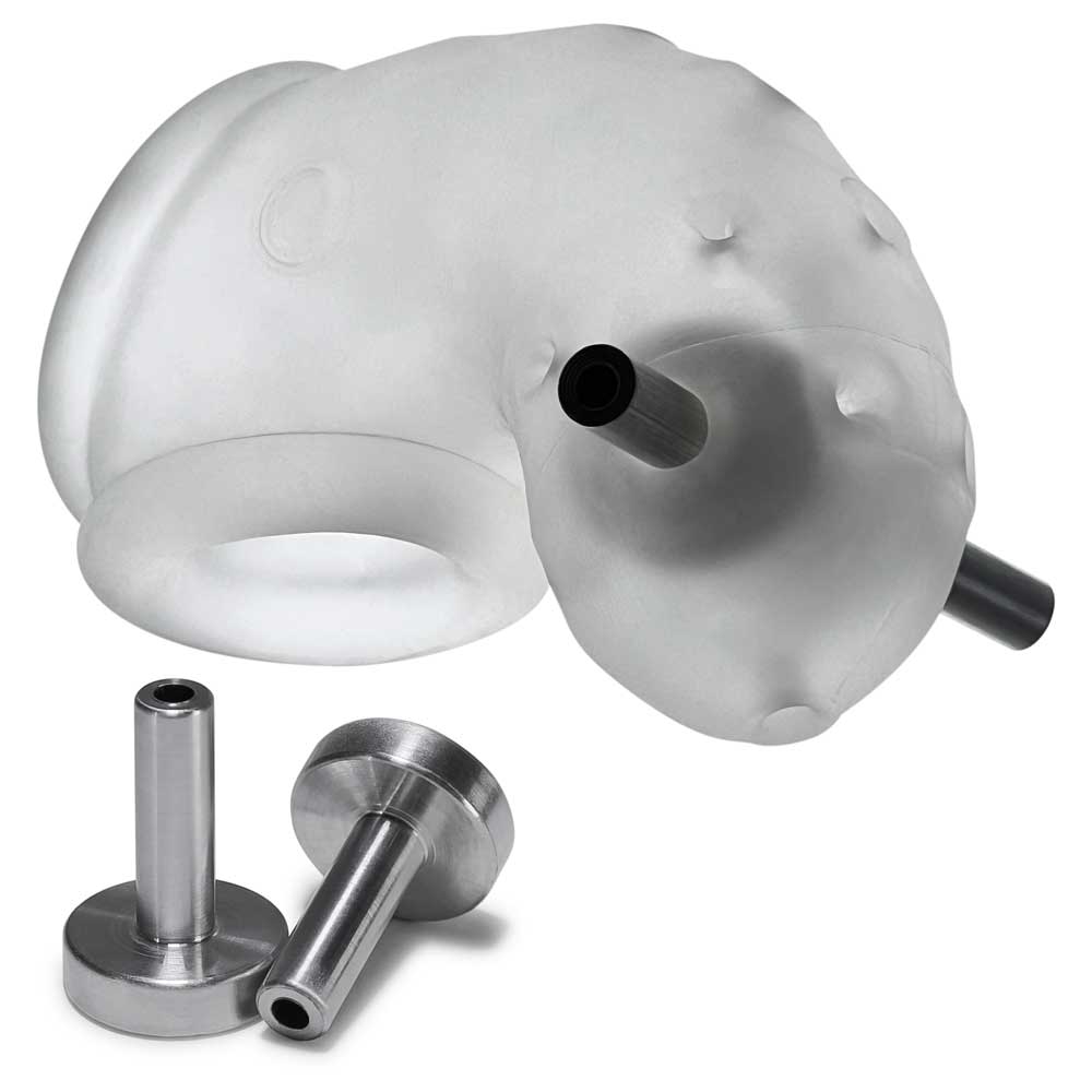 Airlock Electro Large 2-Electrode/12 Position Contact Chastity/Bulger Introducing The Newest Addition To The Best-Selling Air Offering... Airlock Electro. Airlock Electro Is A Super Blubbery, Soft Cage That'S Lightweight And Ventilated. A Built-In Sling At The Base Grips Your Sack And Keeps Airlock Electro Snug In Place. Holes Throughout The Shaft And At The Tip Double As Drainage Holes For Piss N' Jizz Or To Fit Electro Contacts. The Multi-Hole Design Lets You Place Contacts Where You Want To Customize Your Electro Play. Holes Throughout The Shaft And At The Tip Double As Drainage Holes Or To Fit Electro Contacts (Two 4 Mm Electro Contacts Included). The Soft Material And Affortable Price Point Make This Cage Great For Newbies Looking To Experiment With Chastity. Cock-Cage Version Of Air Features Built-In Sling At Base Made Of Soft, Fleshy Plus Silicone Ventilation Holes Double For Drainage Or Electro Contacts Includes Two 4 Mm Electro Contacts Designed To Fit Larger Than The Other Cages Measurements: Width: 2.5'' (6.35 Cm) Height: 4.5'' (11.43 Cm)