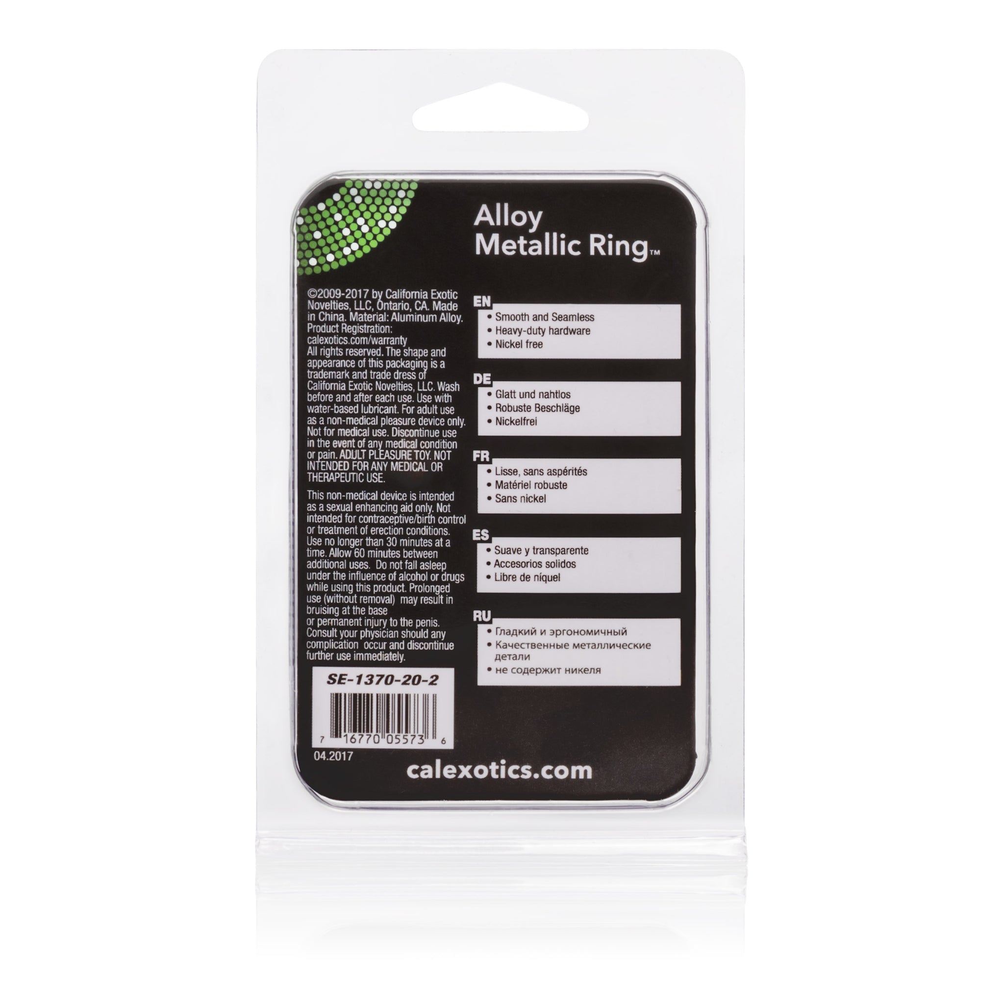 Q: What material is the CALEXOTICS METAL RING L made of?A: The CALEXOTICS METAL RING L is made from a smooth and seamless aluminum alloy for comfort and durability.