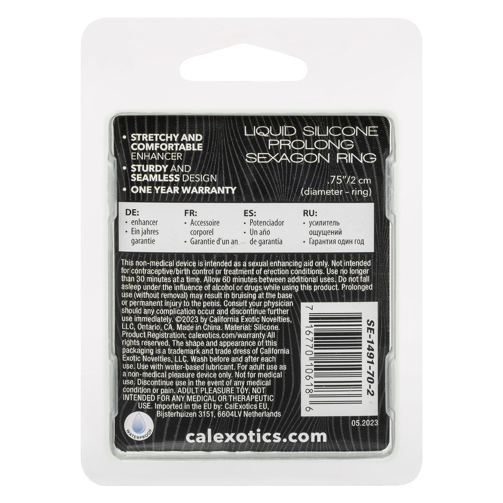 Q: Is the cock ring waterproof?A: Yes, the CalExotics Alpha Liquid Silicone Prolong Sexagon Penis Cock Ring is waterproof, making it suitable for use in various environments.